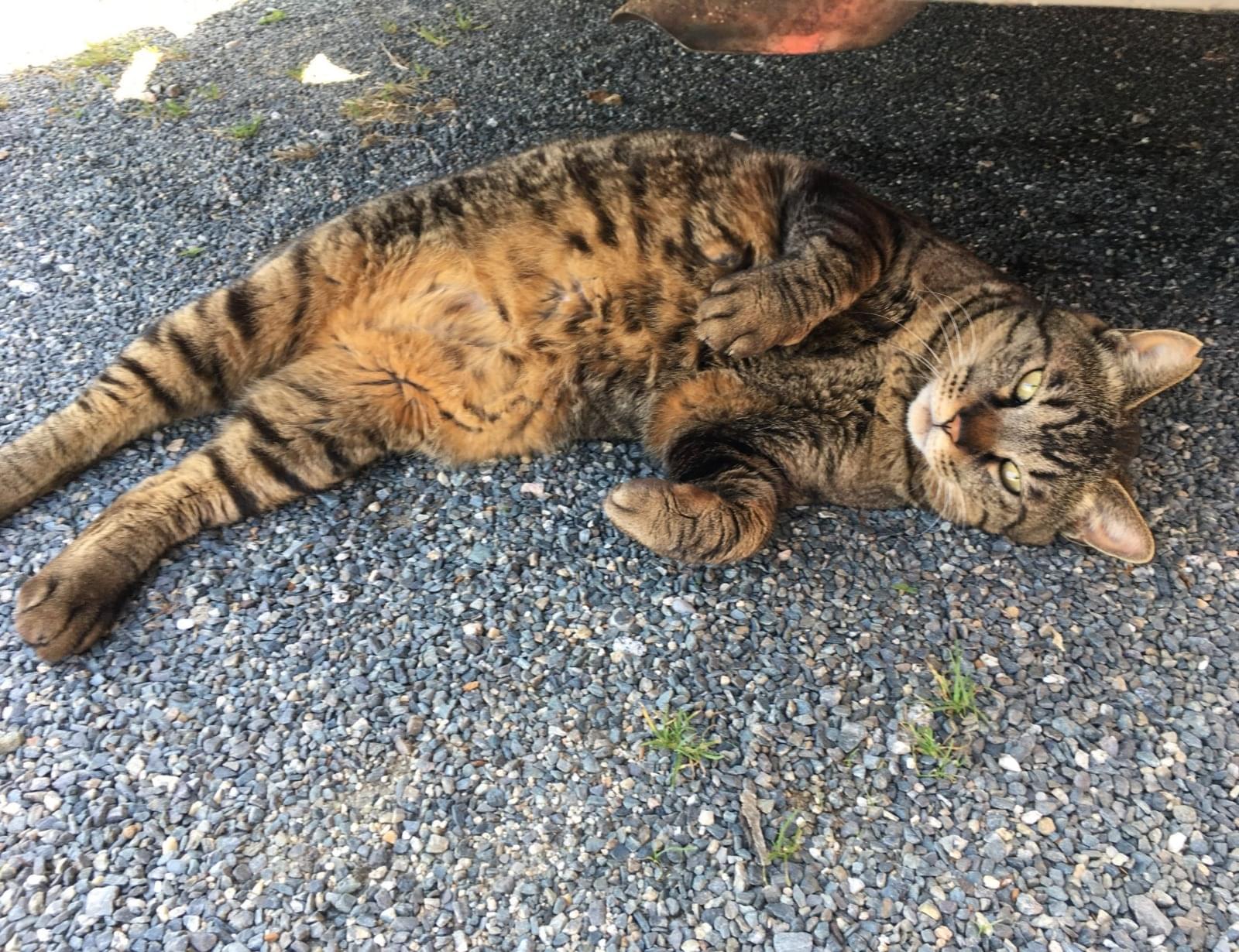 桜耳のキジトラ、耳の後ろに怪我あり、かぎしっぽ