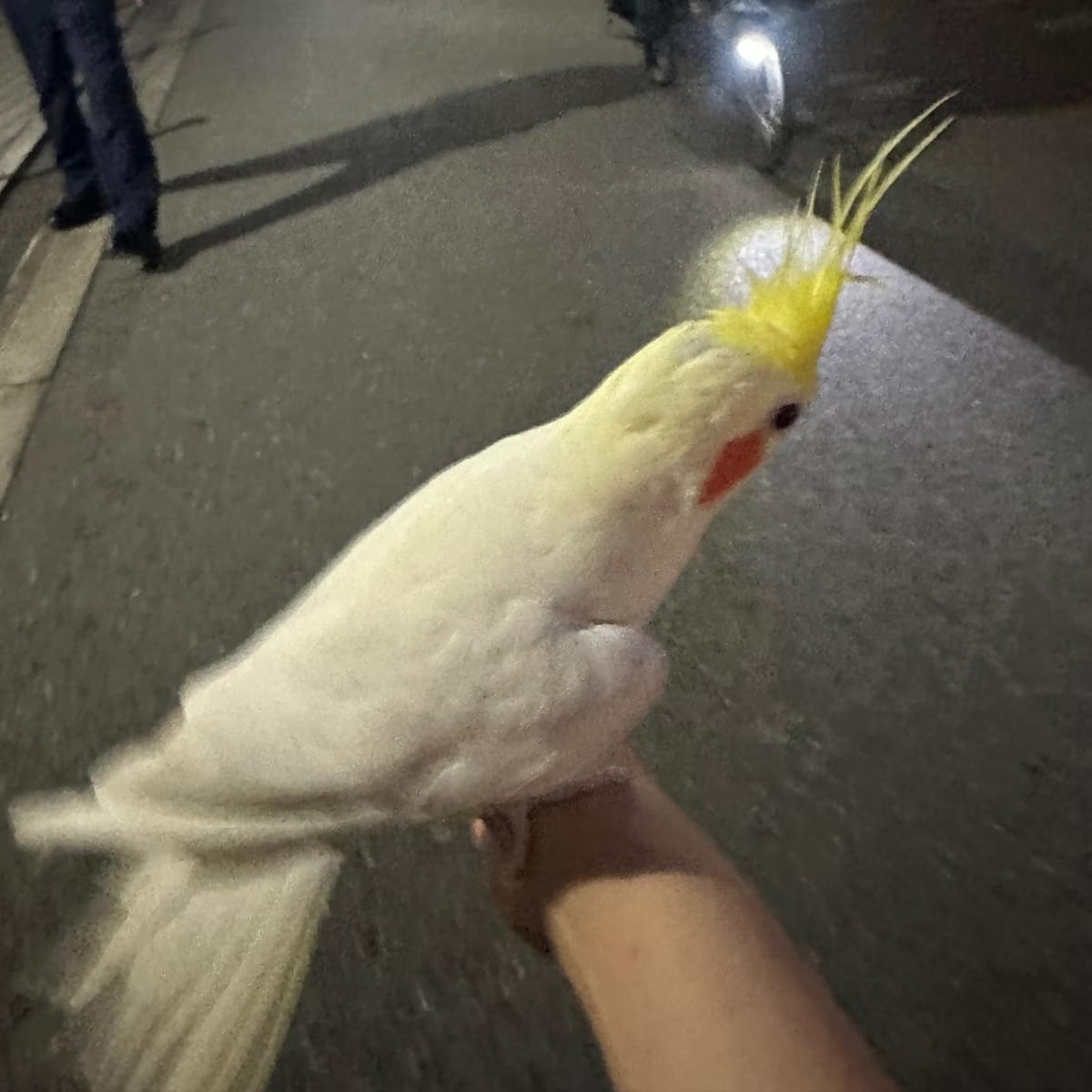 交番に届けています。時々鳴き、警察の方の肩にも乗るほど元気で落ち着いた様子なので最近迷子になったのかなと思います。
