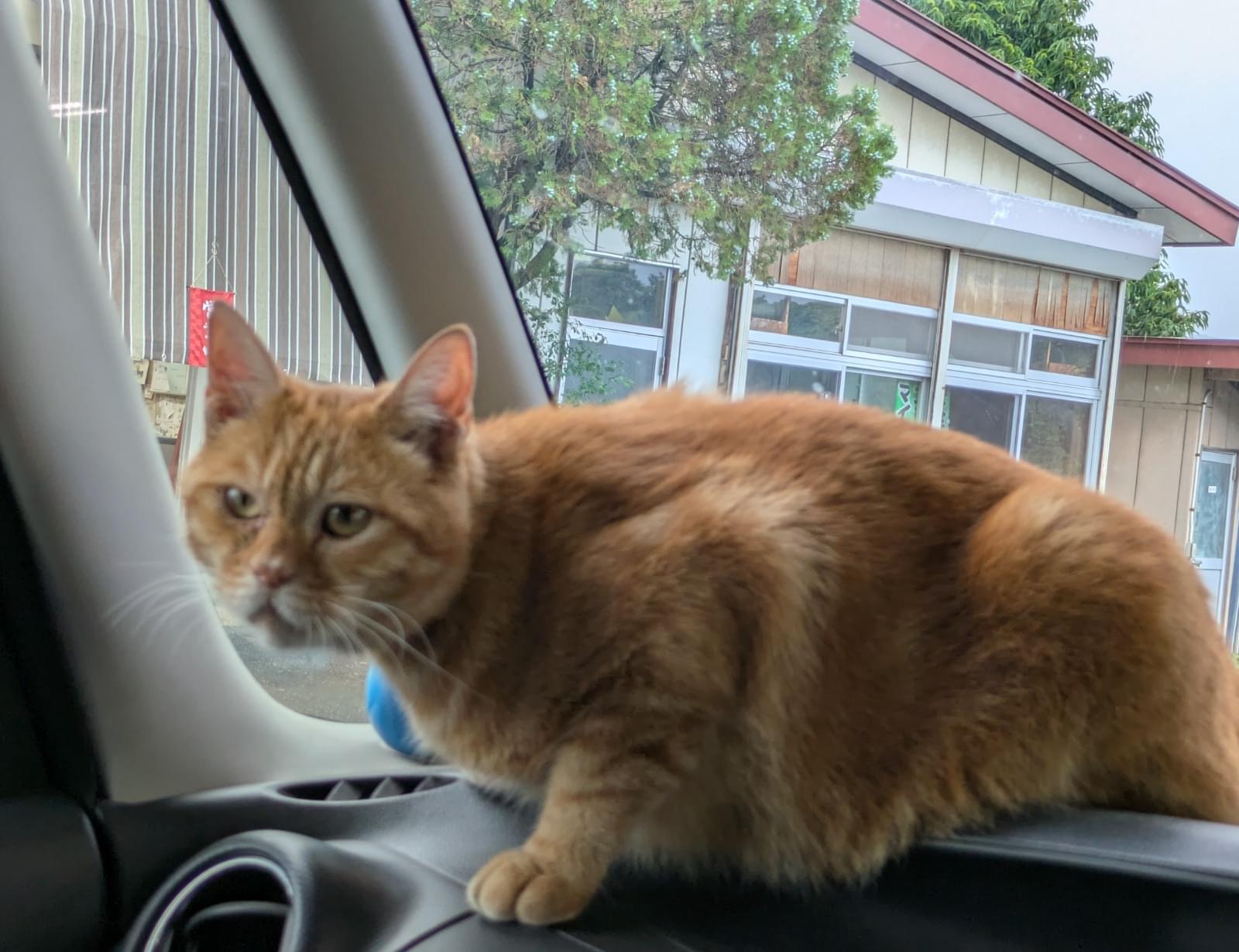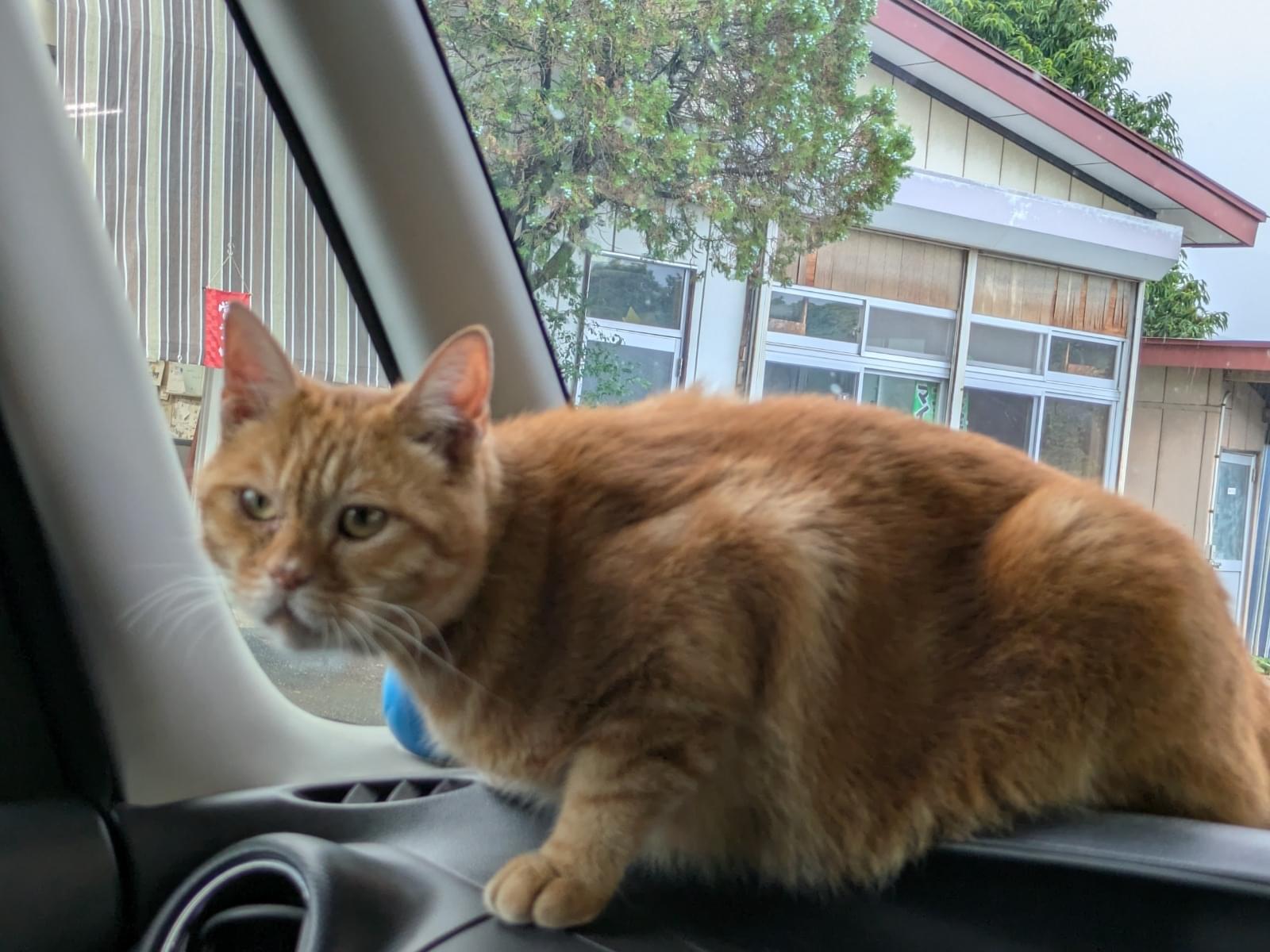 車に乗るのが好きな猫です。赤トラ柄しっぽの先白っぽい猫を捜しています。