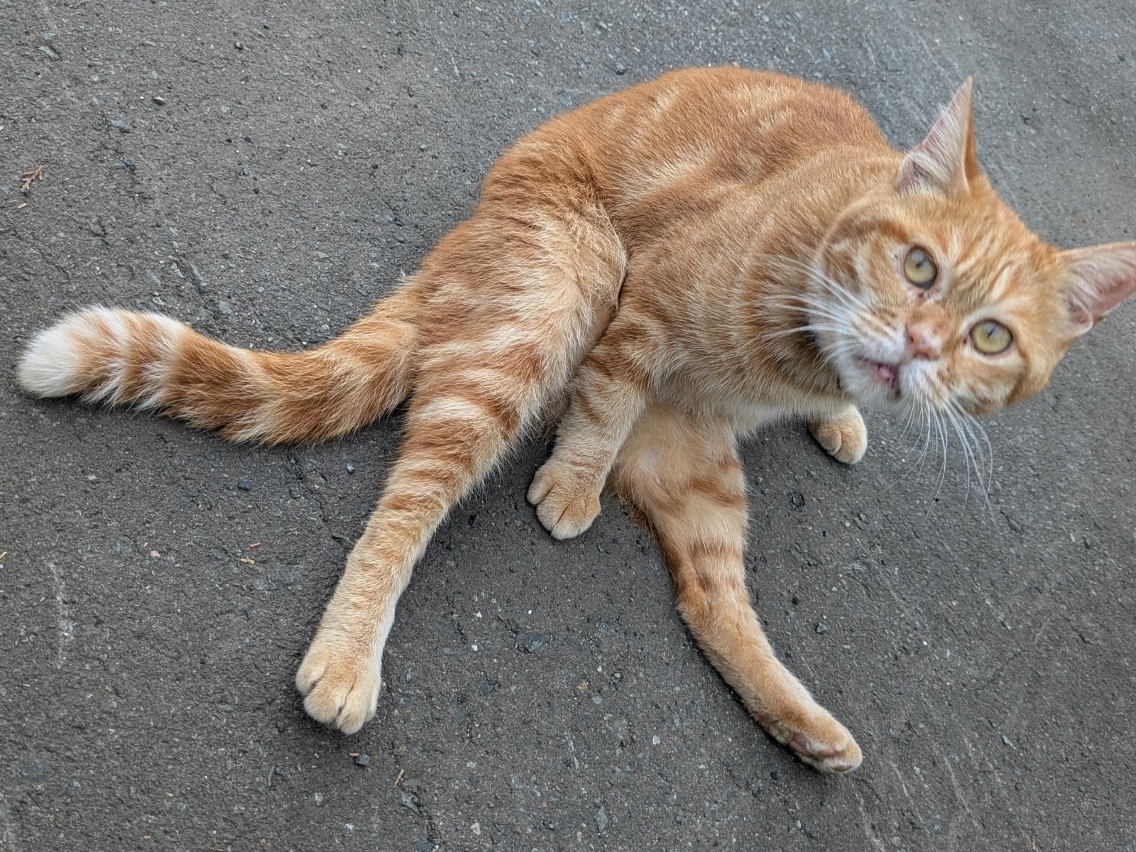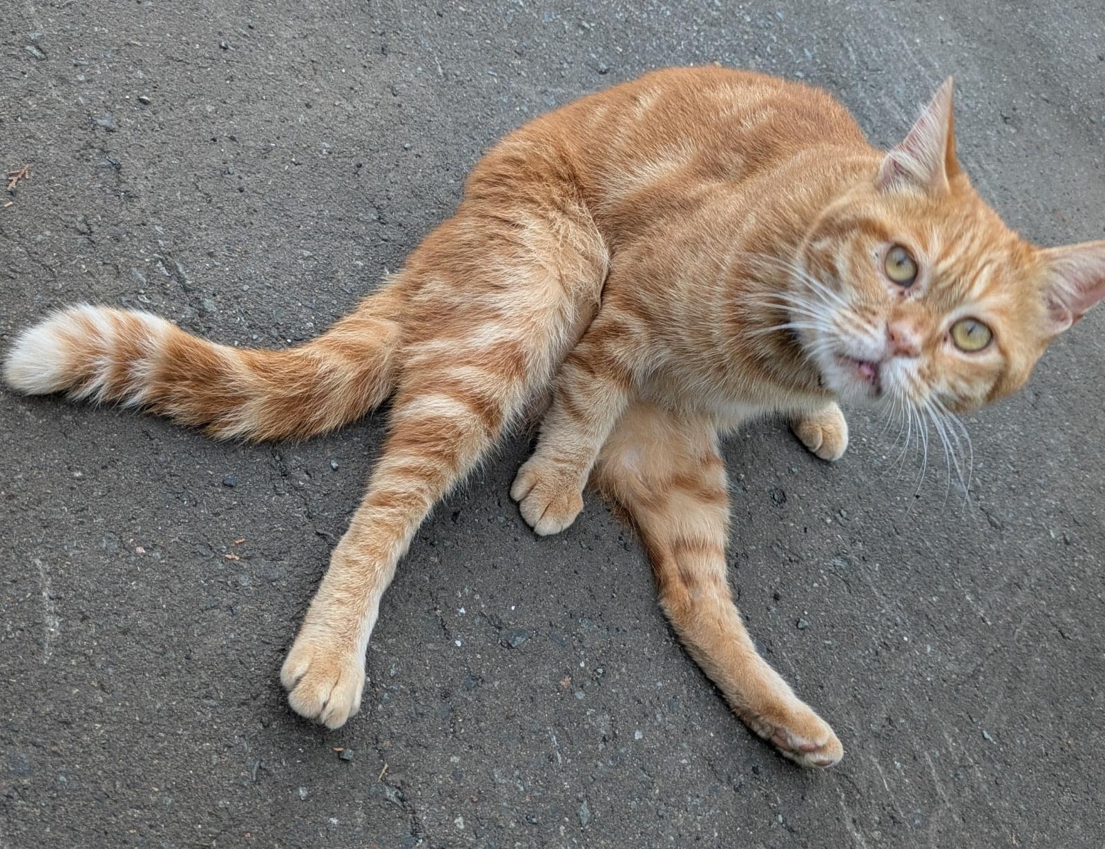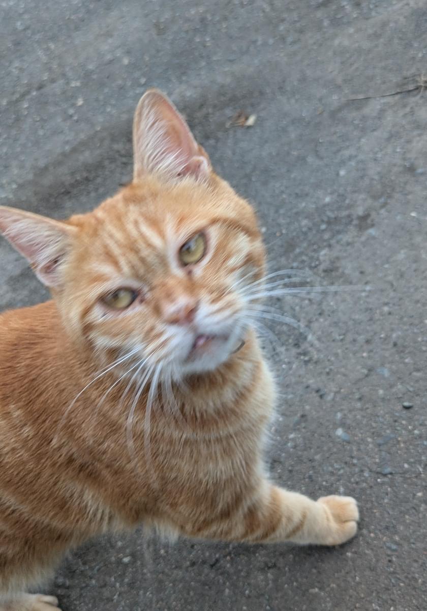 人懐っこい猫です茶トラ柄の顔で水色と青入った首輪をしています。首が少し曲がっていて歩くとき首を傾げて歩きます。去勢済みです。車に乗るのが大好きで特に軽トラックの荷台がお気に入りです。背中部分は小鹿柄のような感じでしっぽは赤トラ柄で先っぽは白っぽいです。10/10朝より見かけず、いつもなら夕方のご飯の時間には来ているのに帰っていないです。近所を色々な所を探してはいますが見当たりません。首輪は水色っぽいのをつけていたと思います。前の日は疲れていたのか一日中椅子の上で触られても起きず寝ていました。