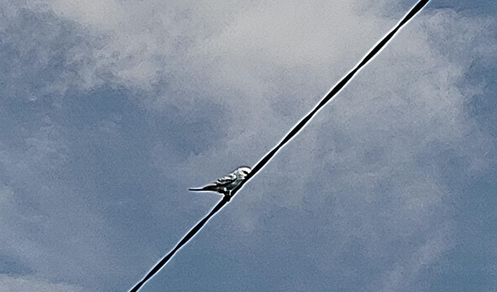 兵庫県、神戸市西区狩場台で水色のインコを見ました。