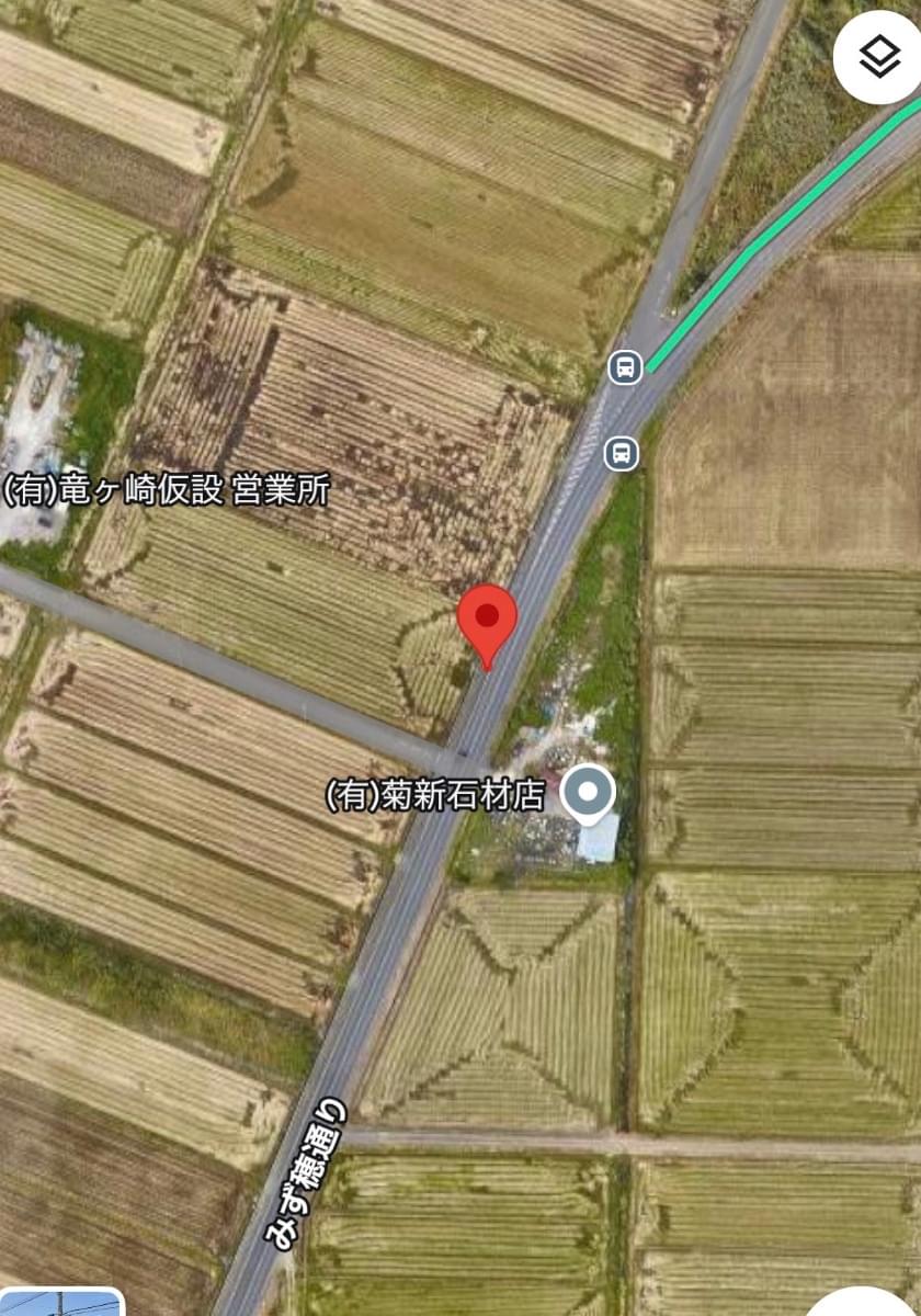 写真の赤い印のところを歩いていて左の田んぼに入っていきました