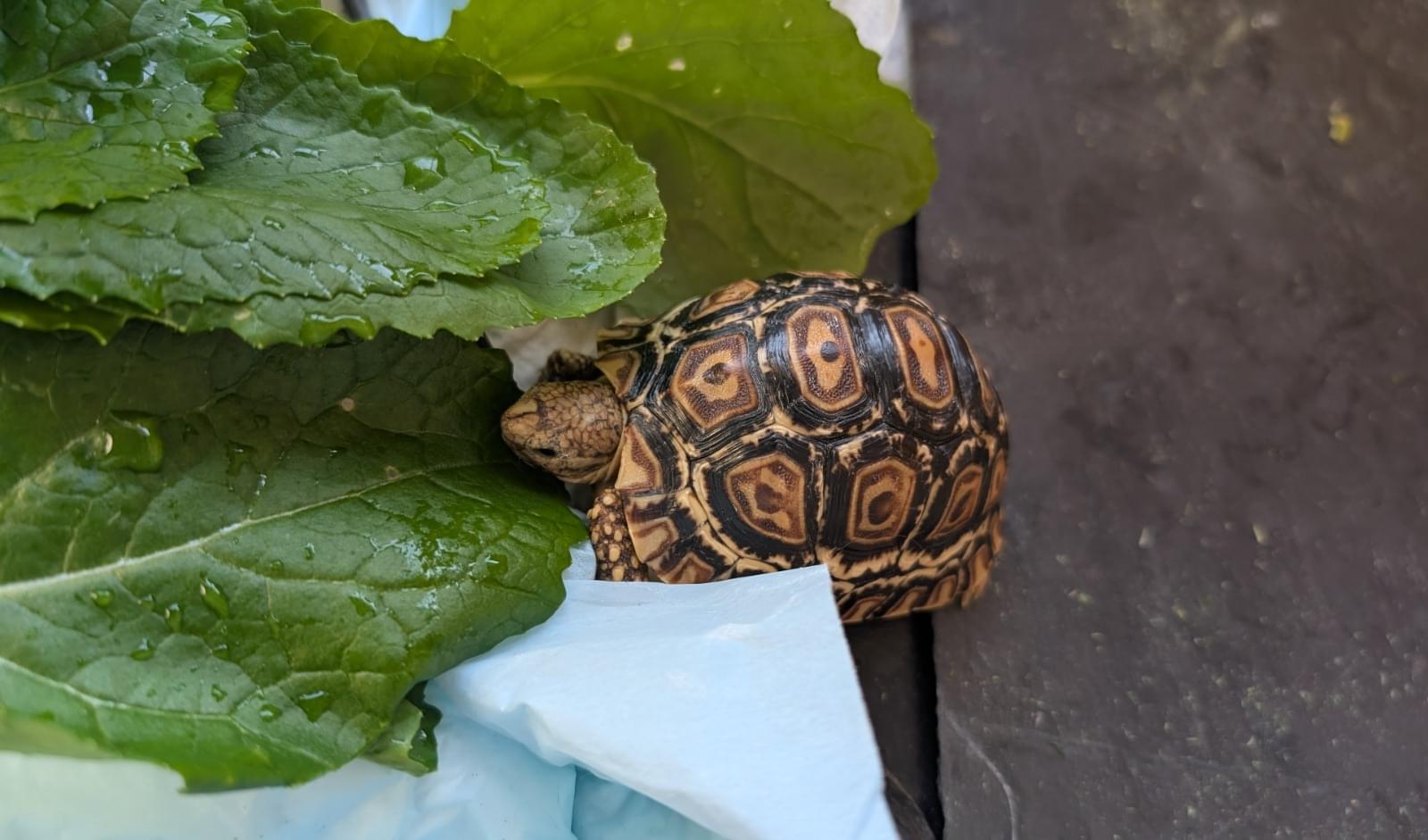 綺麗なヒョウモン柄の赤ちゃんリクガメです。