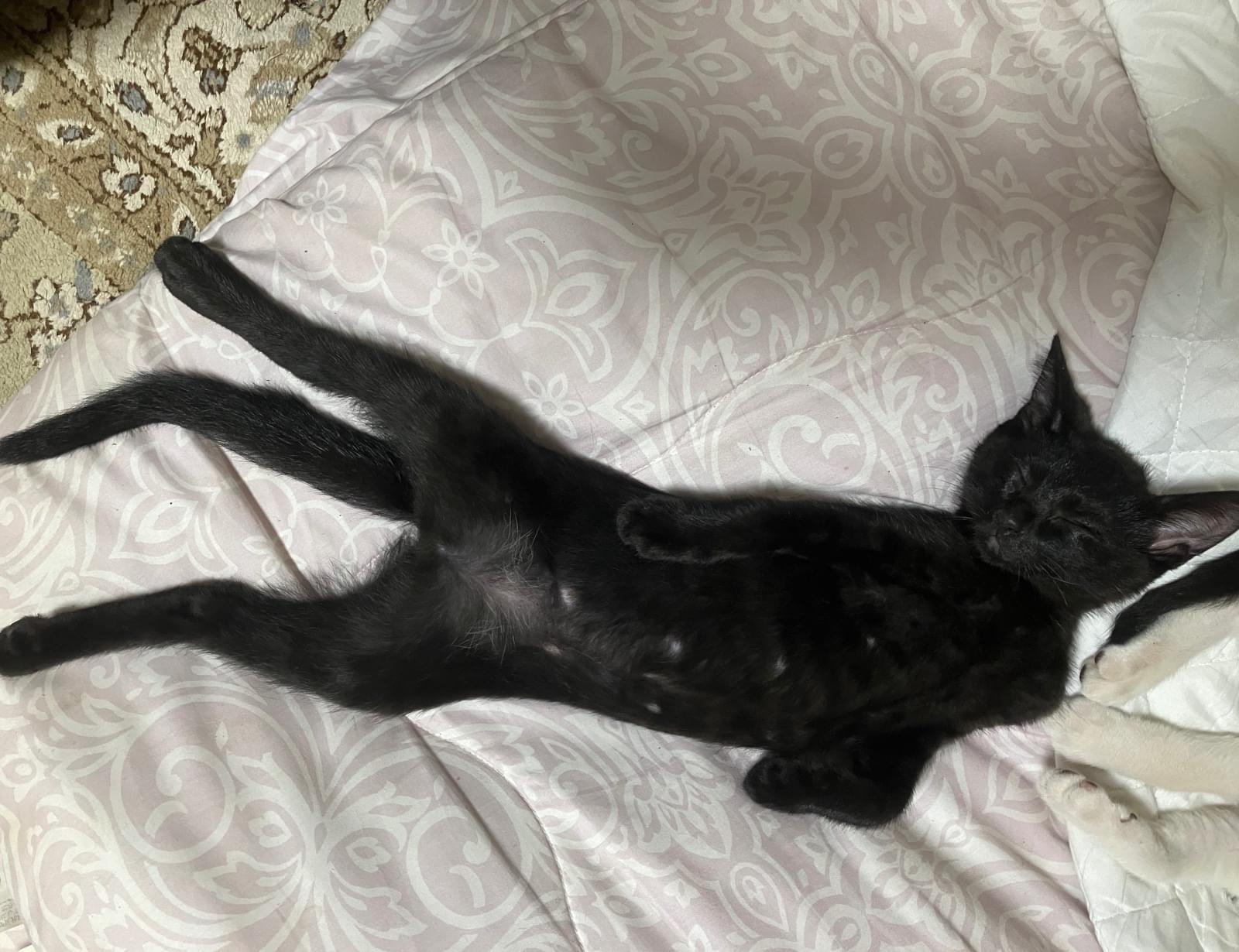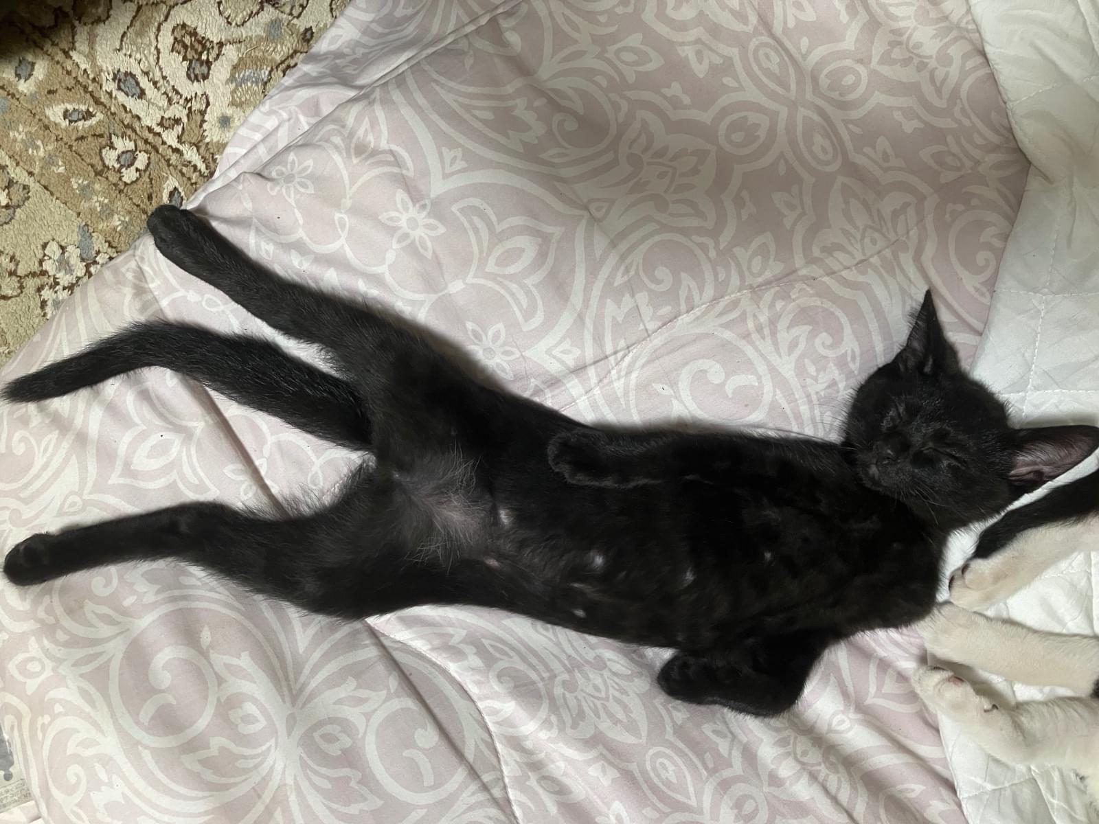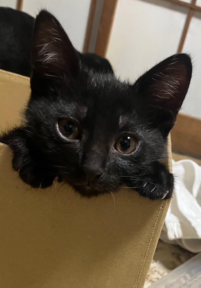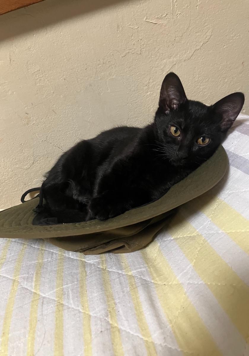オレンジ色の目をした小柄な黒い子猫を探しています