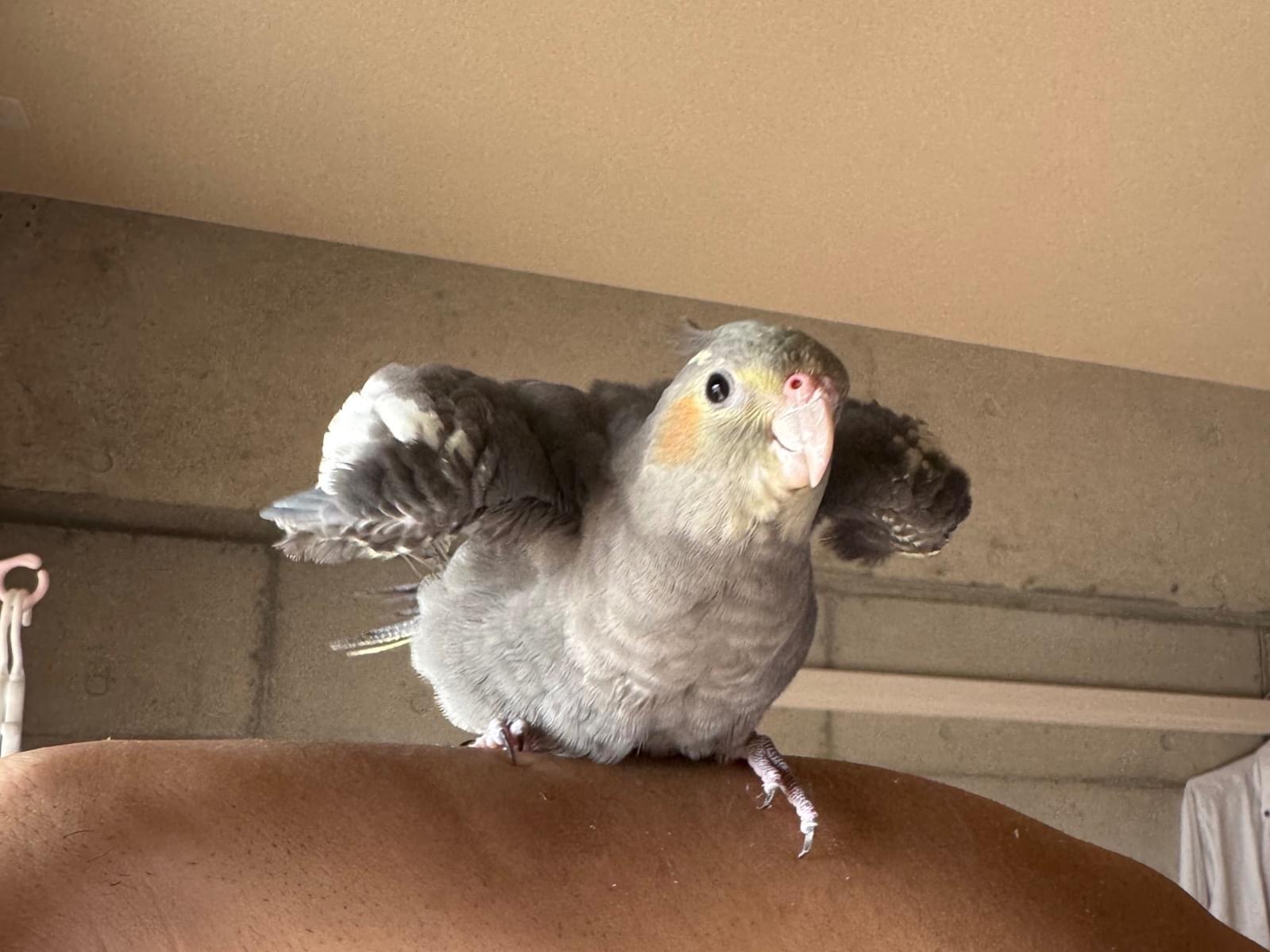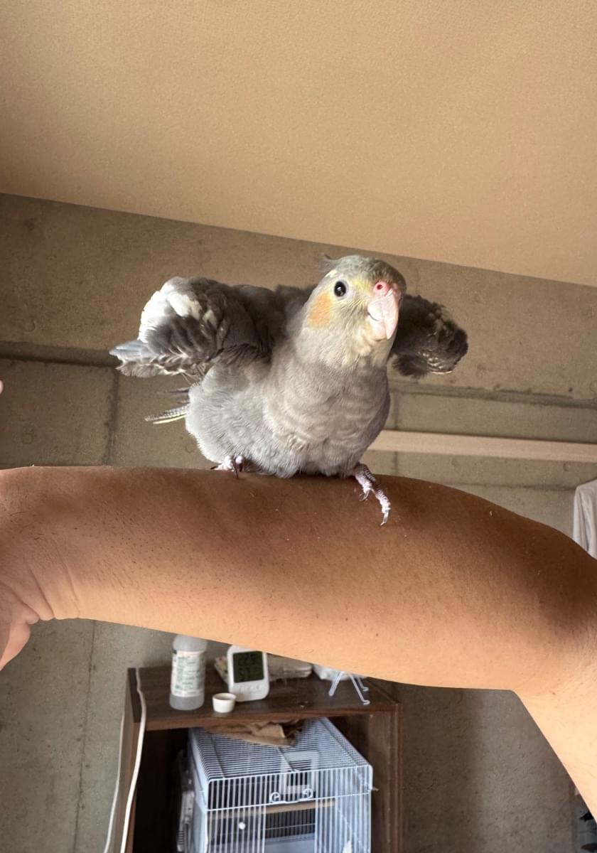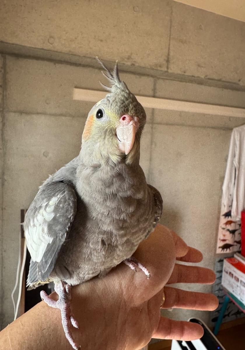 怖がりなため住宅や木に隠れてないかと思っています。オカメインコの中でも小柄で、早朝は元気に鳴きますが普段から大人しくあまり鳴きません。