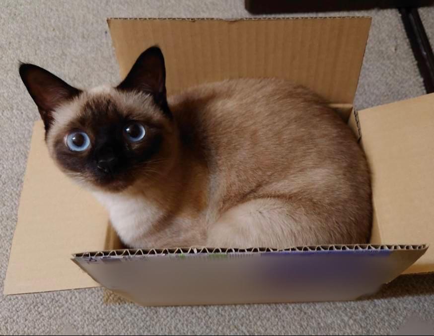 シャム猫のような見た目をしてます(耳、口周り、四肢の先、しっぽが黒い)