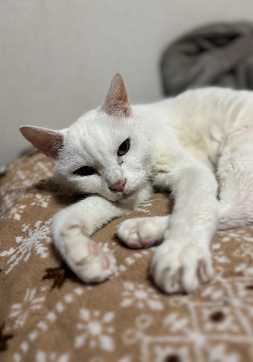 真っ白で首輪など何も付けていません。老猫なのでそんなに遠くにいけないと思います。ご飯は凄く食べますが、細いです。人懐っこく近寄っても逃げません。22歳なので少しボケてきた感じがあり、低い声で良く鳴きます。警察に届け出してますのでもし保護していただけましたら茨木警察署まで連絡頂けると助かります😭