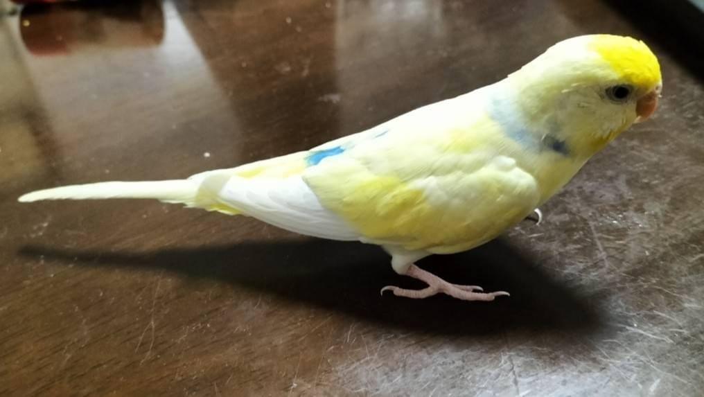 頭と羽根は黄色っぽく、体は白いです。