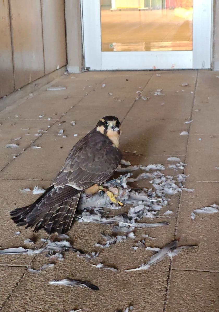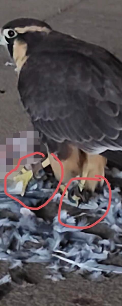 ナガオハヤブサ(?)を目撃 ハトを食べている