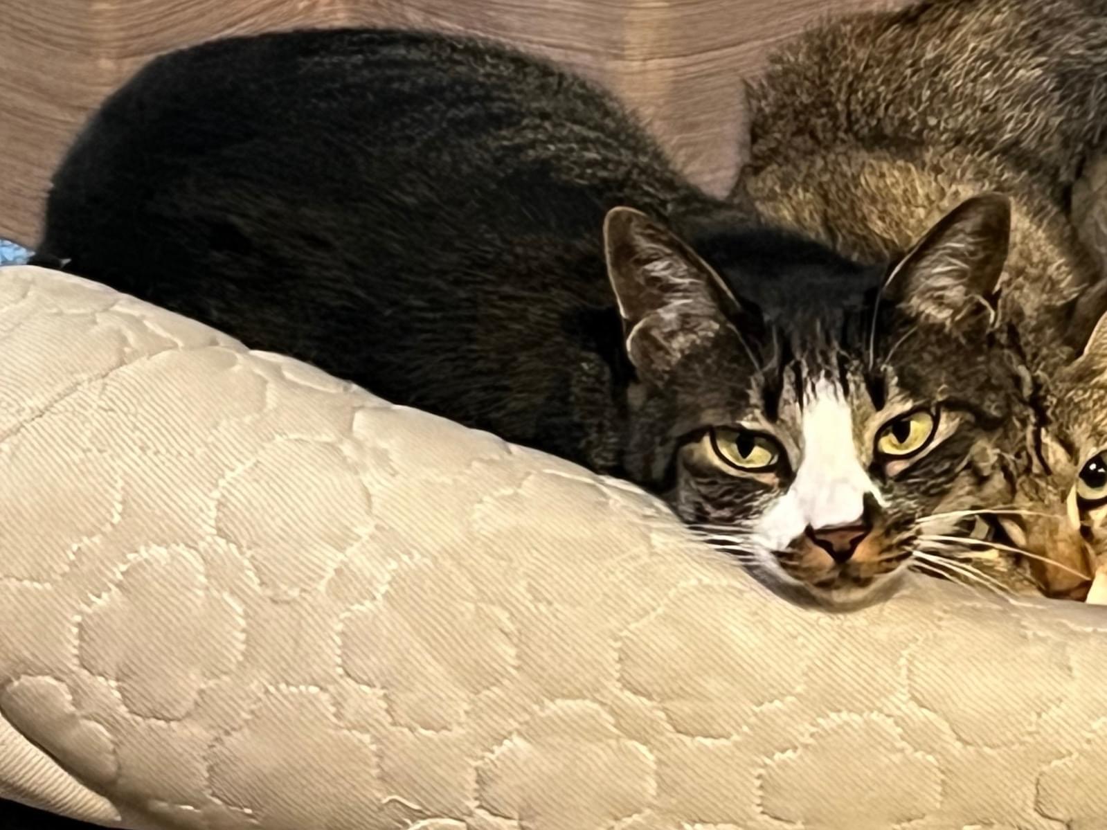 黒のトラ、足先が白の靴下、目が黄色のメス猫です。室内飼いだったため首輪はしていません。