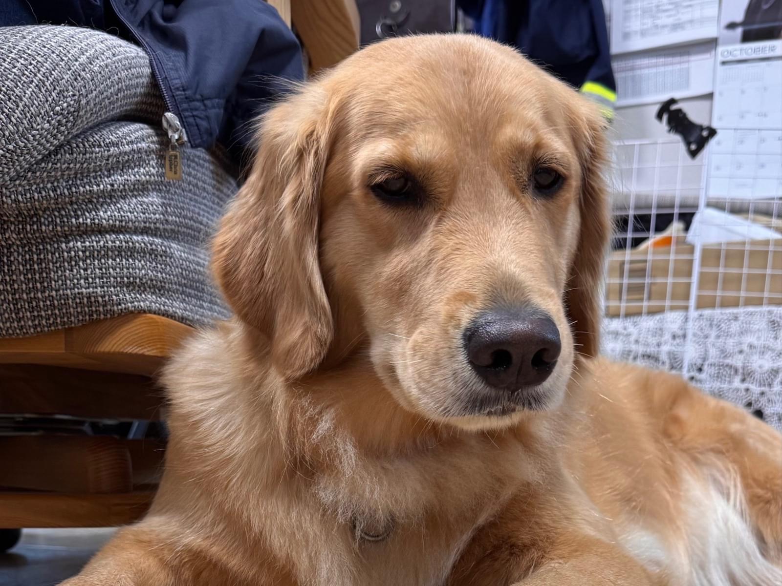 ベロ先に黒い斑点がゴールデンレトリバーを探しています