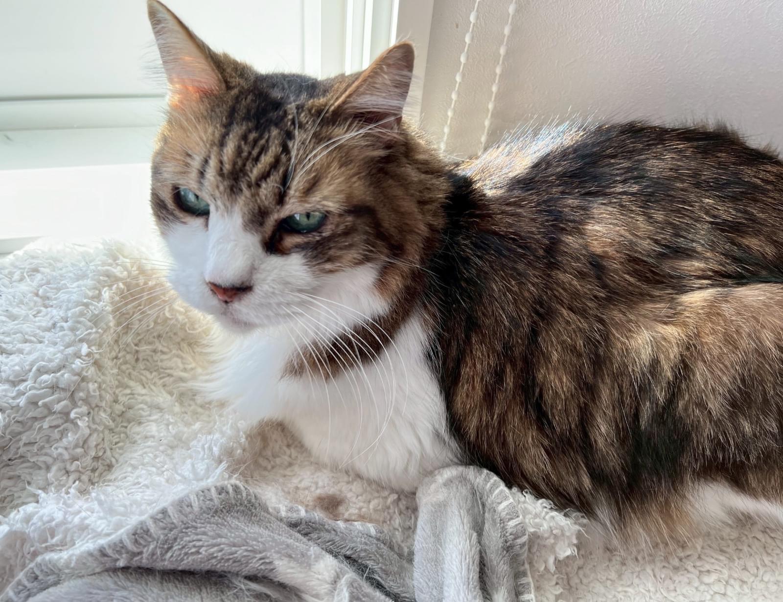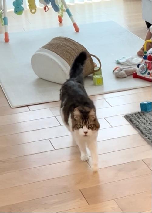 キジトラ白でやや長毛でもふもふとしたしっぽが特徴。