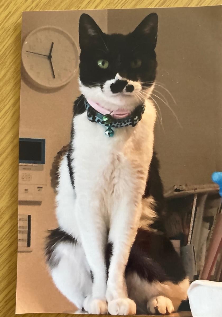黒白オス猫で首輪がブルーの鈴2個の猫を探しています