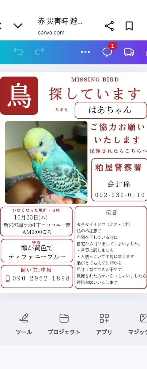 小さなことでもいいので、見かけた場所などお知らせいただけると助かります。