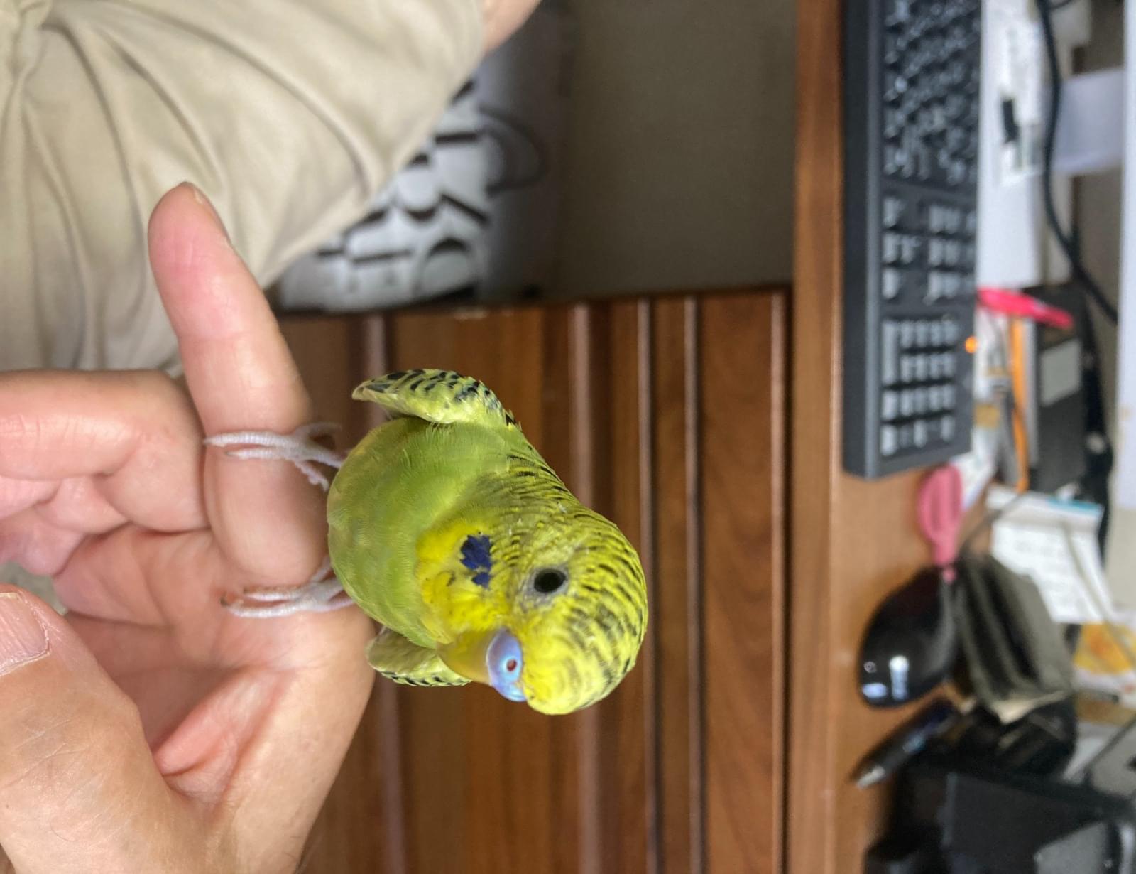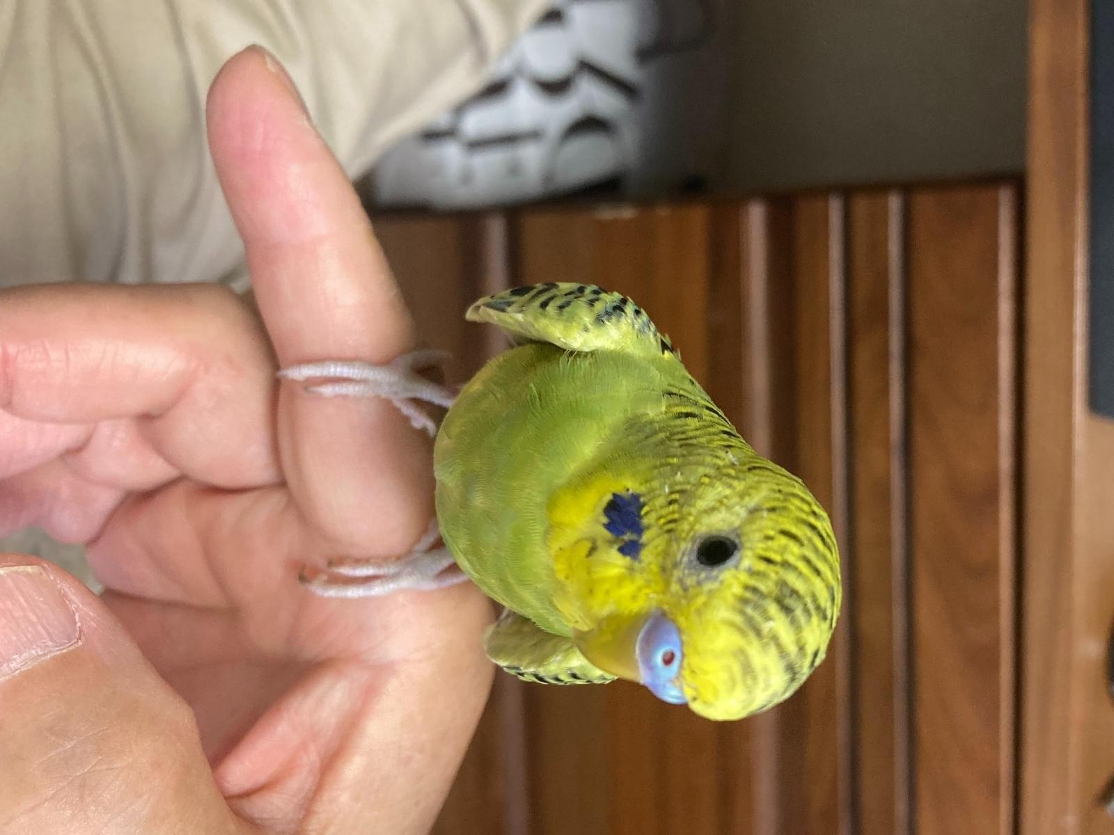 まだ5か月足らずですが、元気で活発な子です。色はノーマルに近い黄色、緑色、黒が混ざっています。くちばしと足はやや青みが買っています。