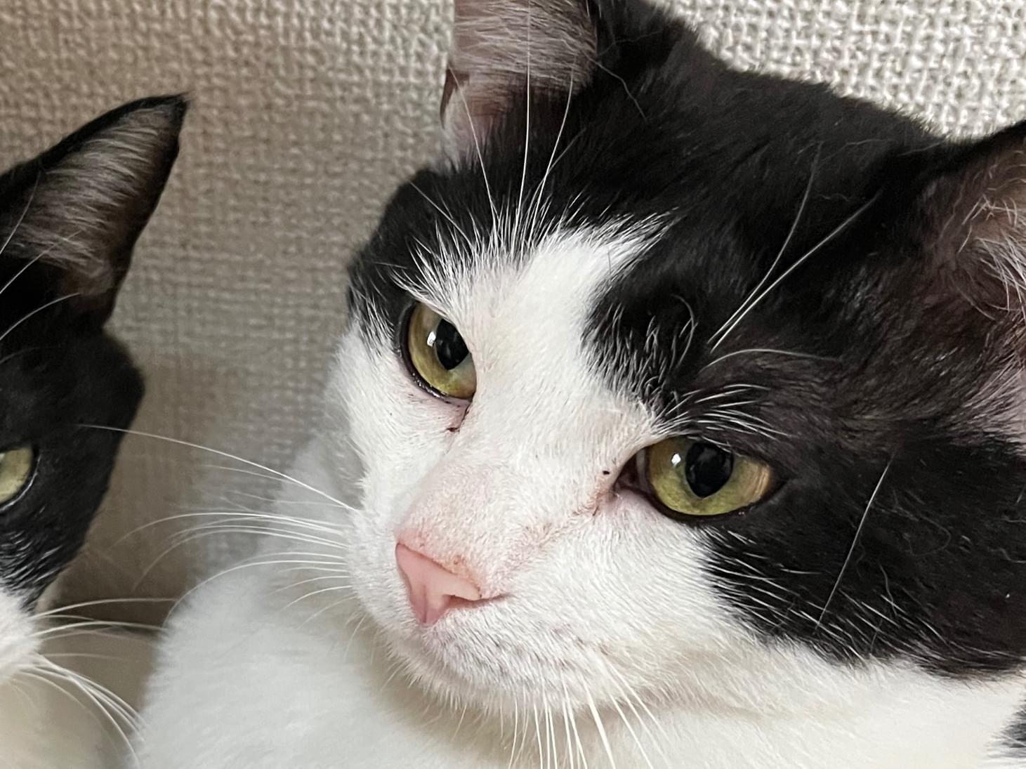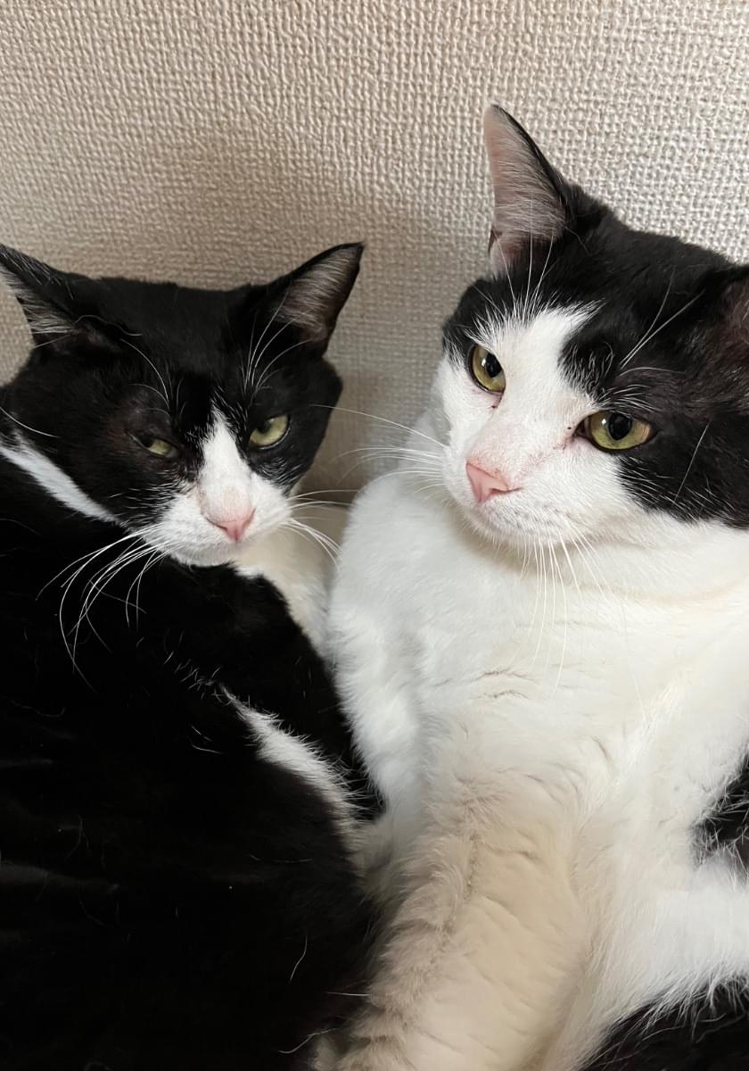 23日の朝初めて自分で網戸を開けて外に出てしまいました。2枚目の写真は右側の子です。臆病ですが懐っこく、おでぶ猫です。