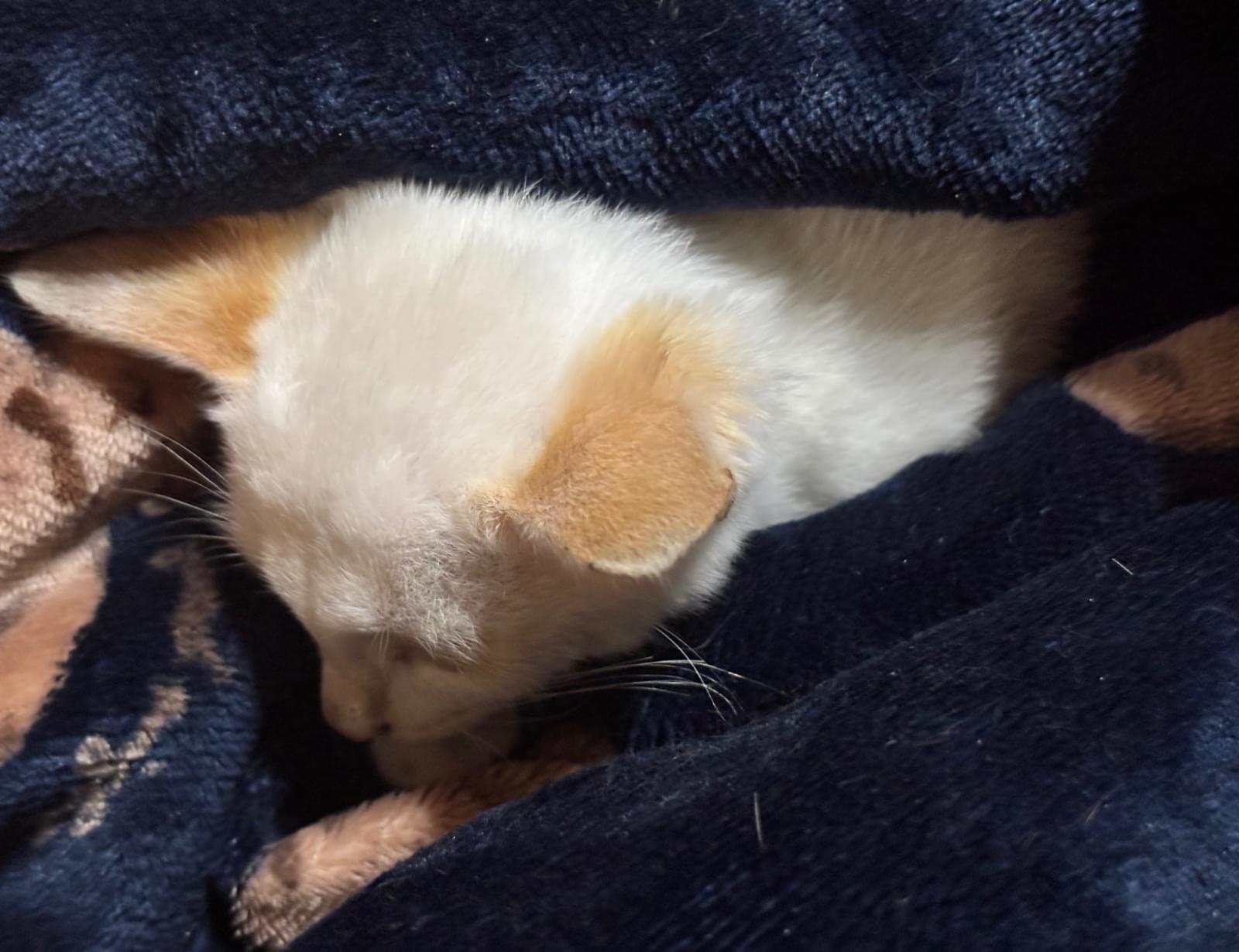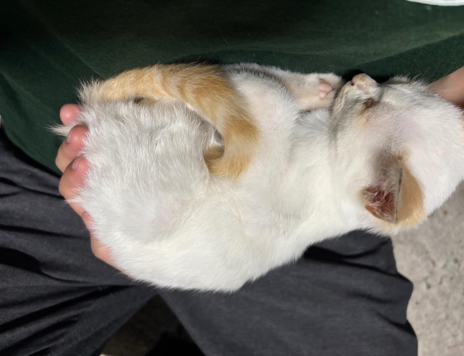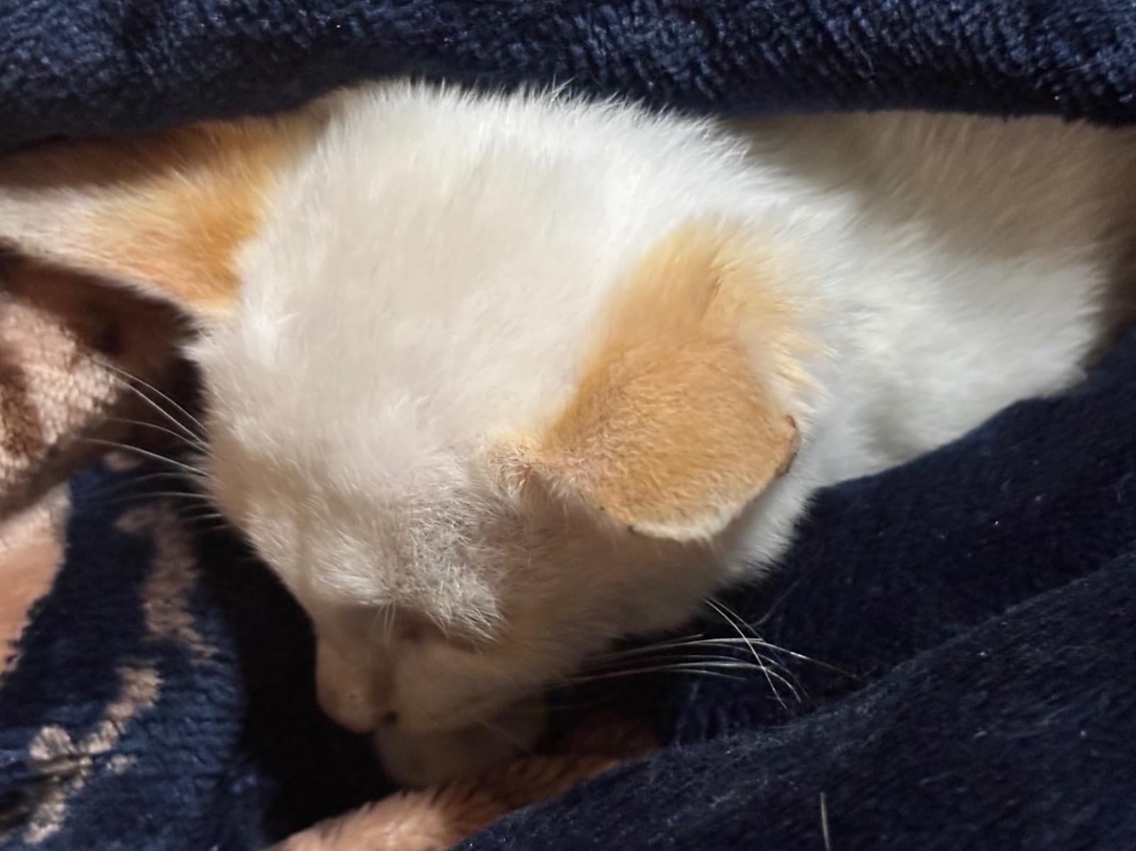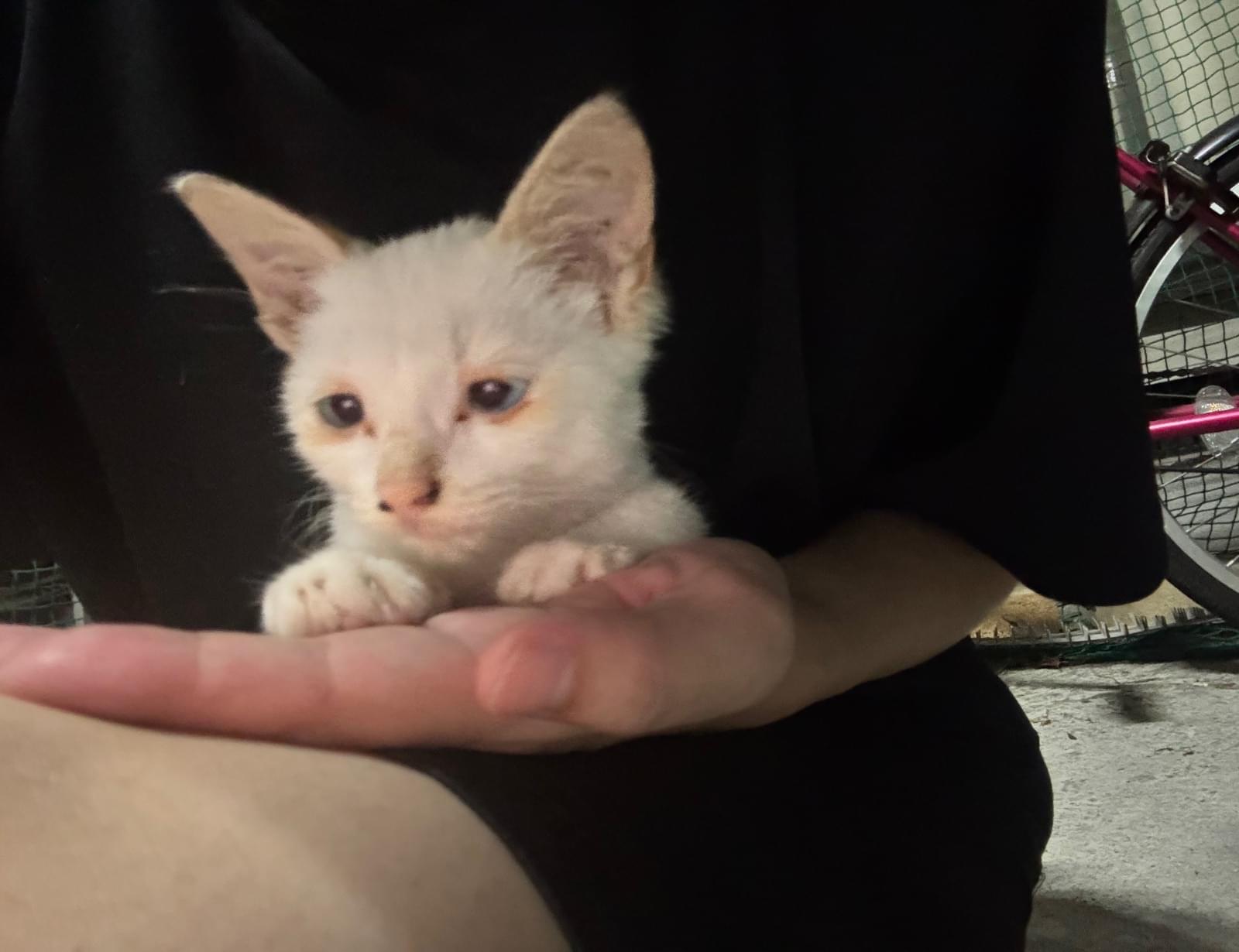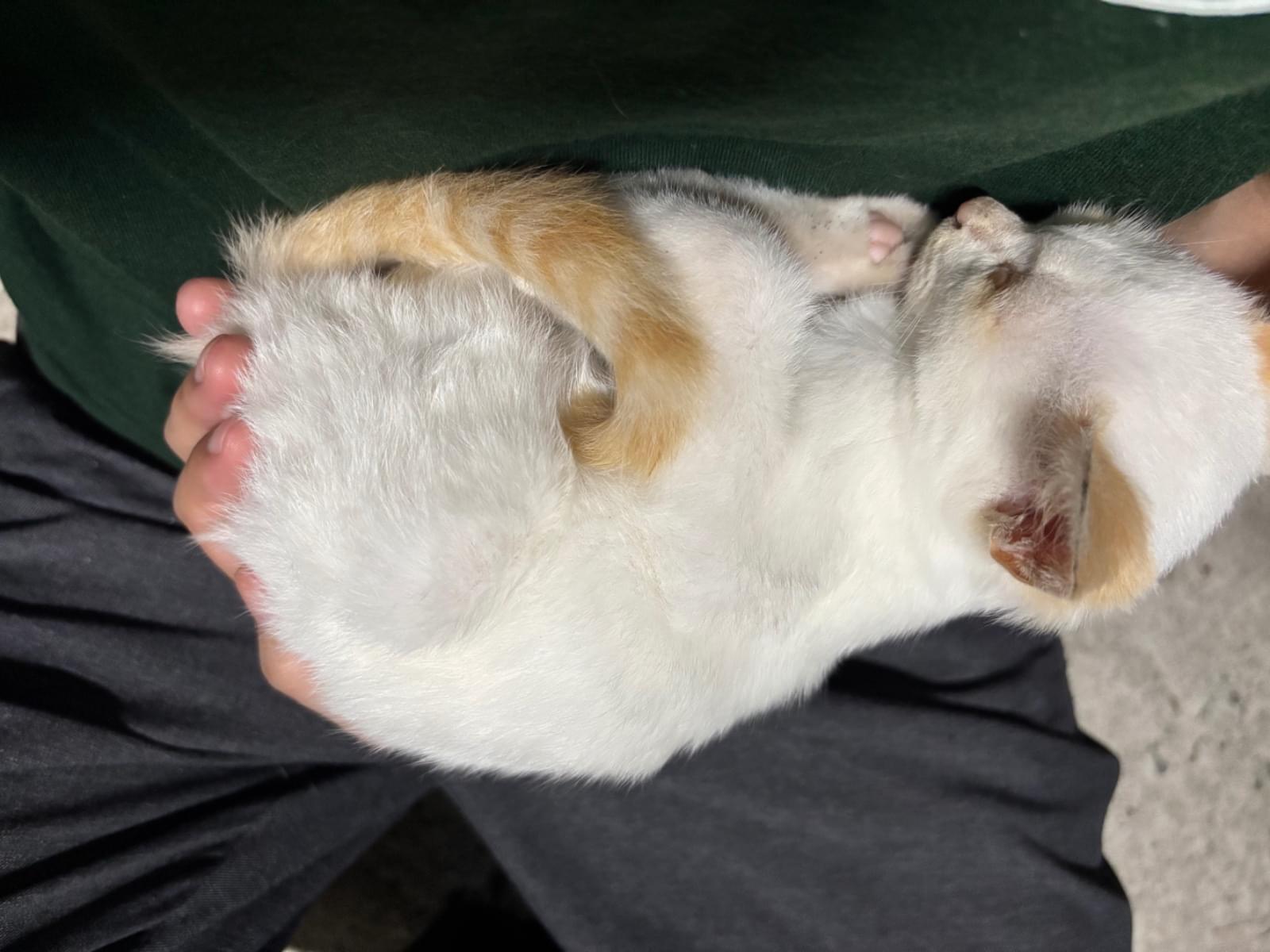 両手に乗せれるほどの大きさでしたが、子猫の成長は早いので、もう多少は大きくなったかもしれません。