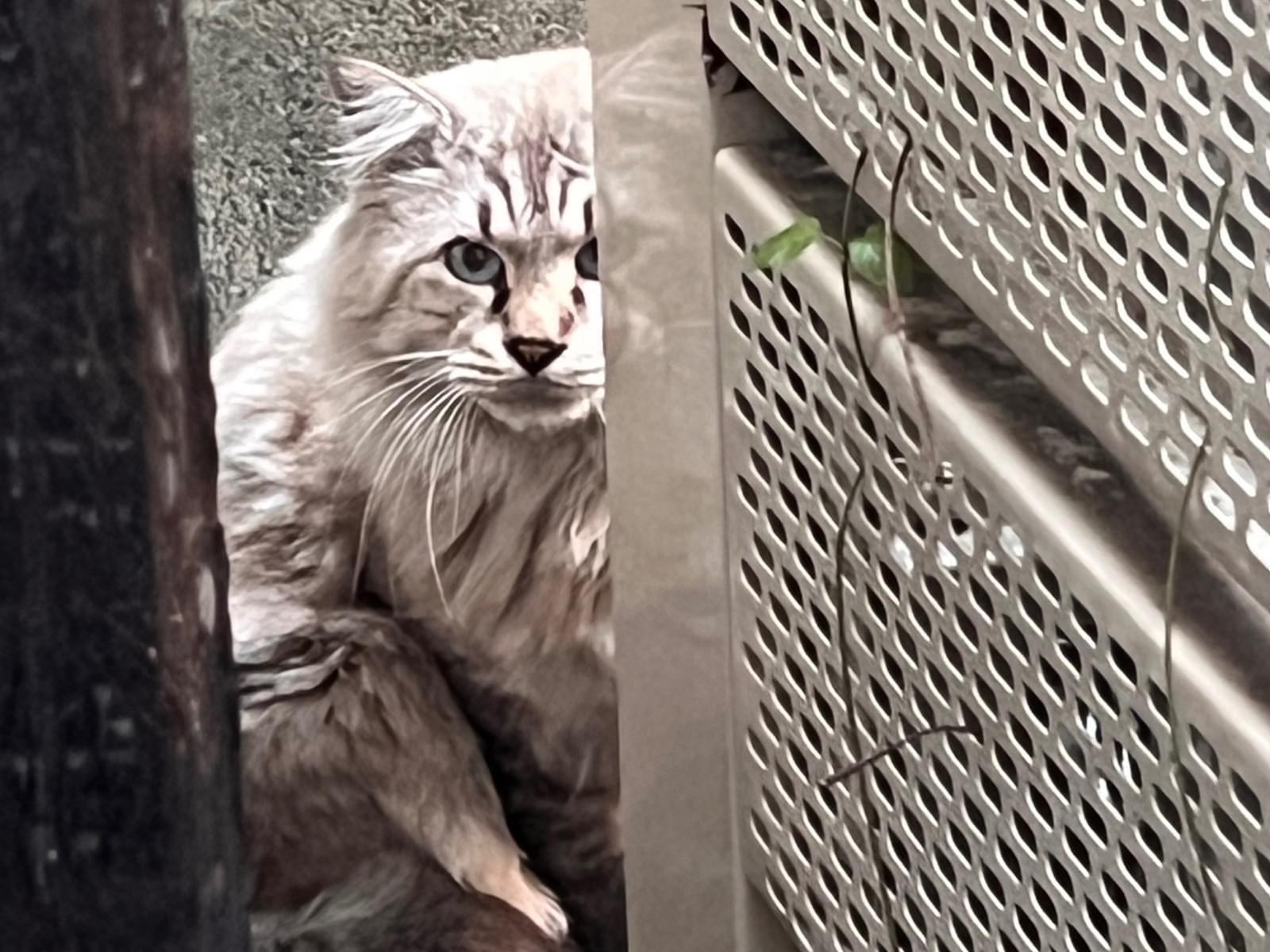 グレーぽい、白い毛 太い尻尾 大きな体 猫