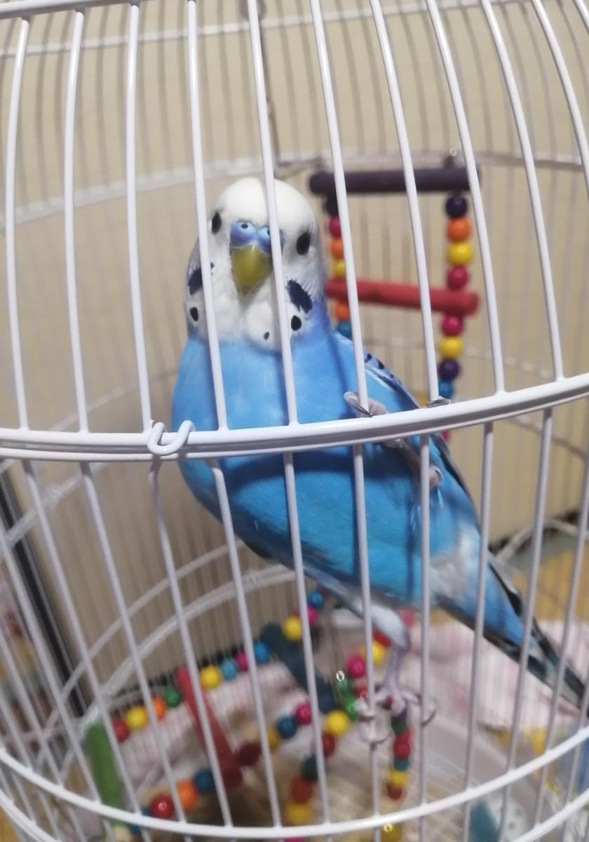 鼻が青く、体がブルーで羽が黒の模様のセキセイインコを探しています。