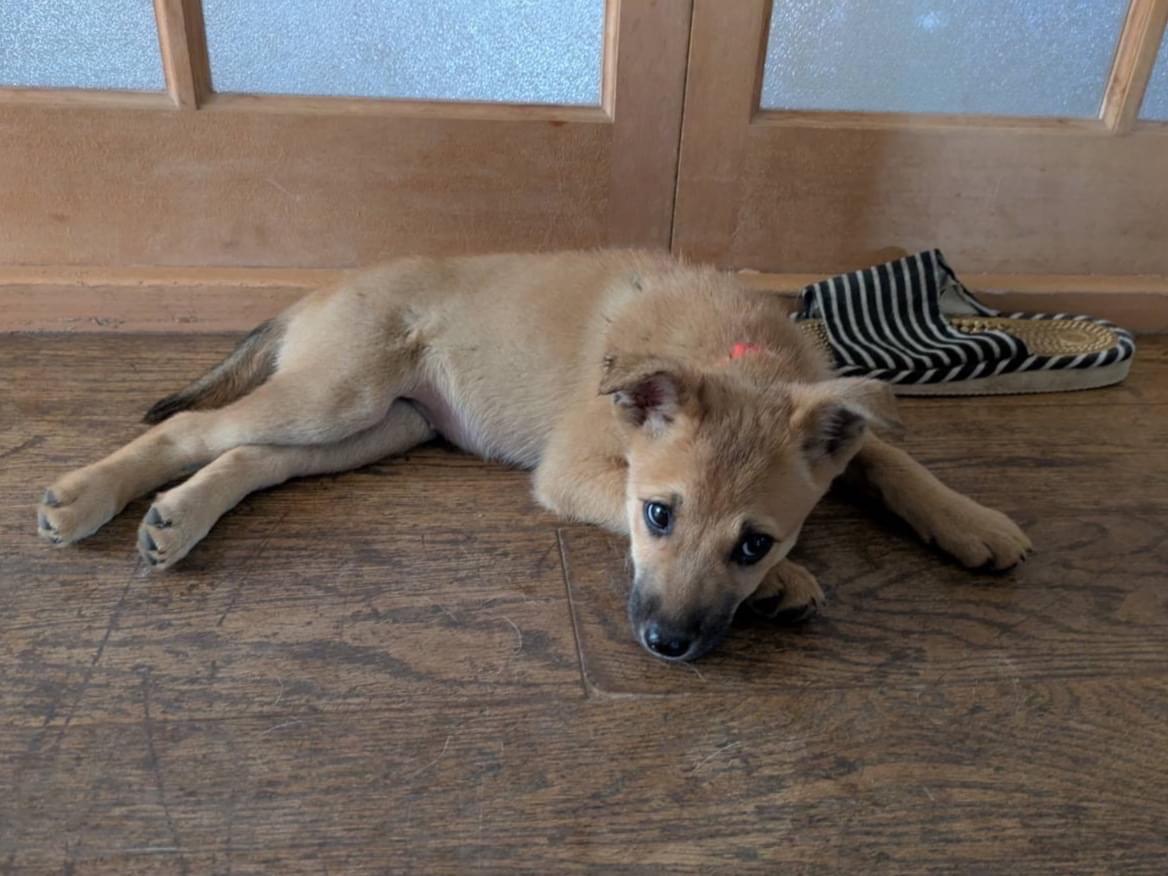 首輪が抜けて、逃げてしまったため、首輪をしていません。薄茶色で、痩せ型、とても臆病な子です。
