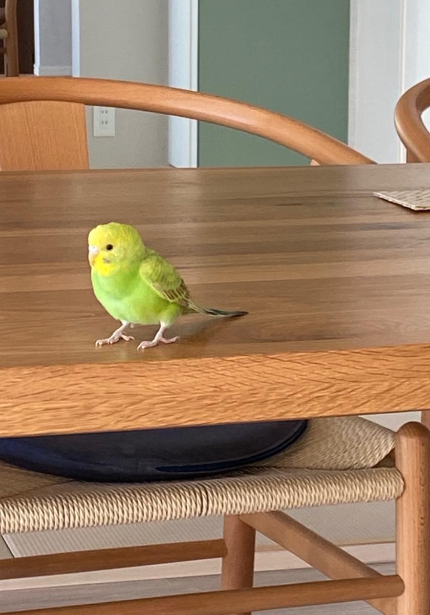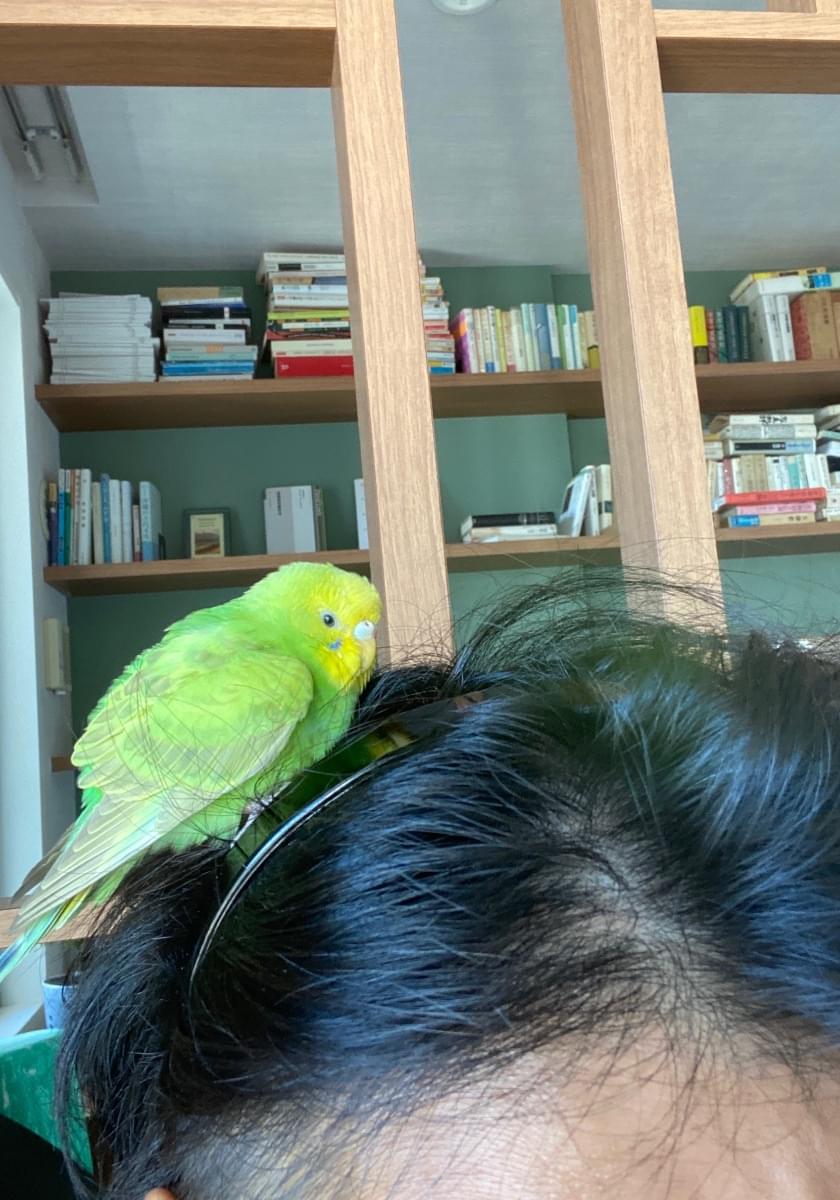 1日の朝、ベランダにやってきたとおもったら、すぐに手に乗ってきました。なつくがはやいか頭の上が好きらしく、わたしの髪の毛を甘噛み(毛繕いか?)したりで、ずっと頭の上にとまっています。あまり鳴きません。