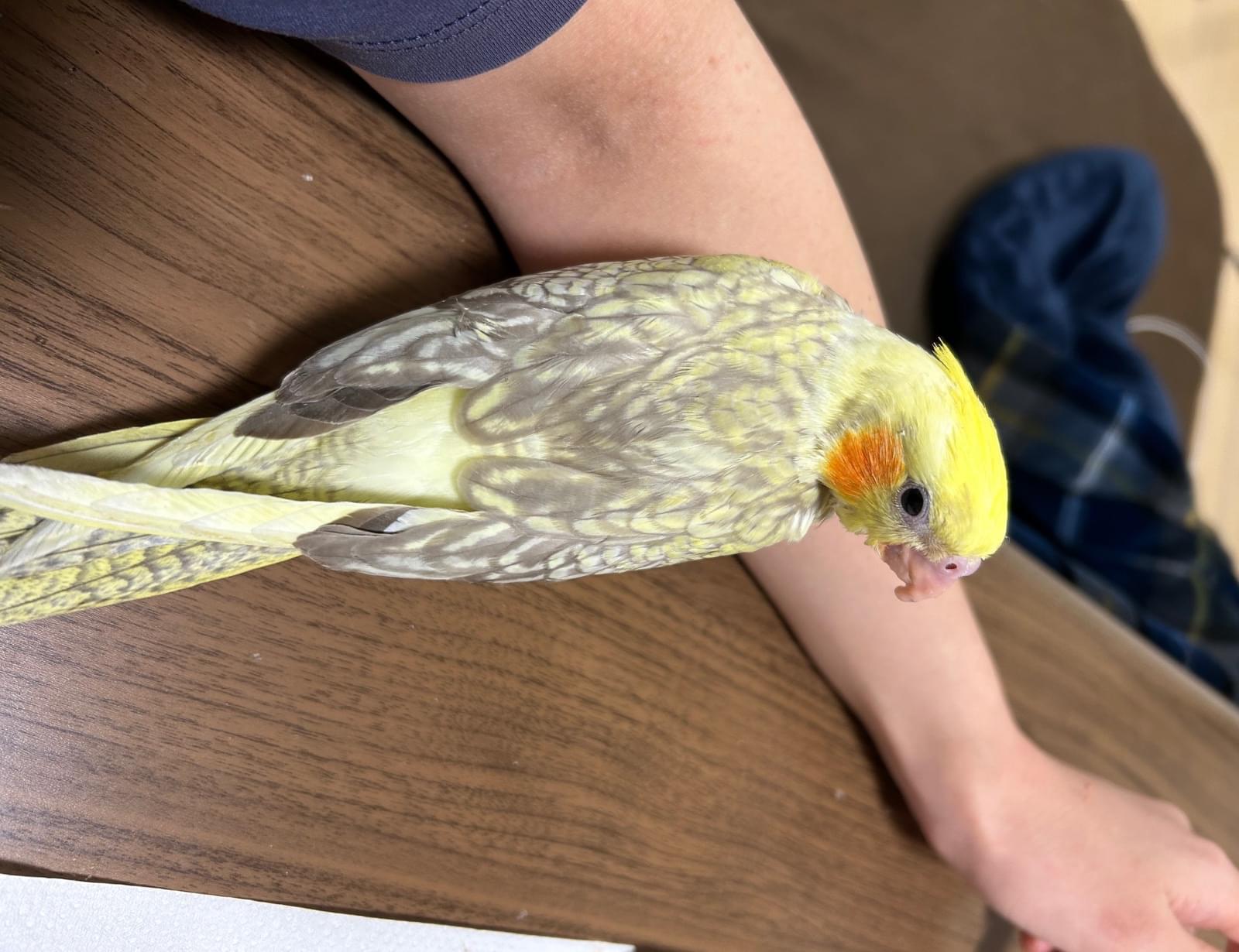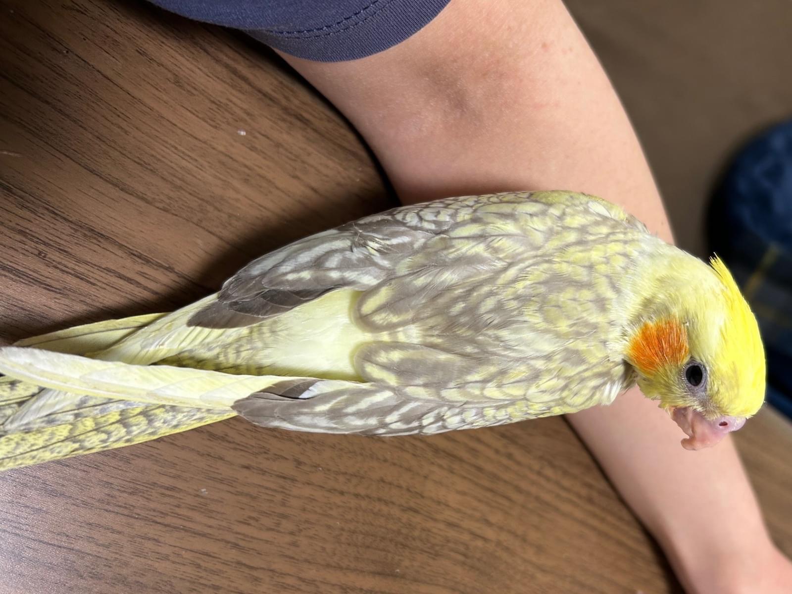 手乗りのシナモンパールパイドのオカメインコです。臆病な性格で、人の頭に乗るのが好きです。足環、切羽等行っていません。