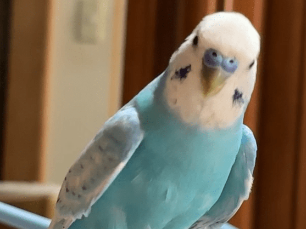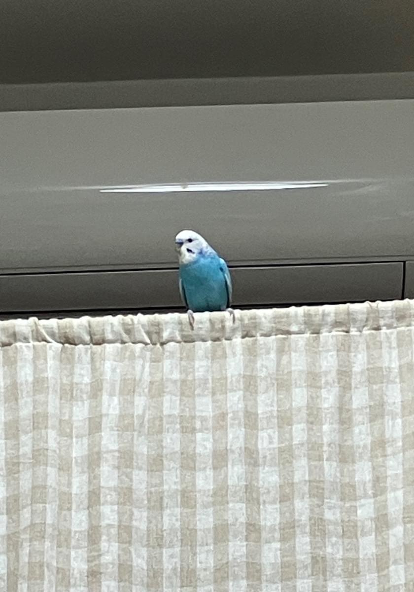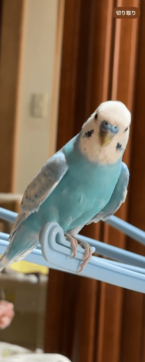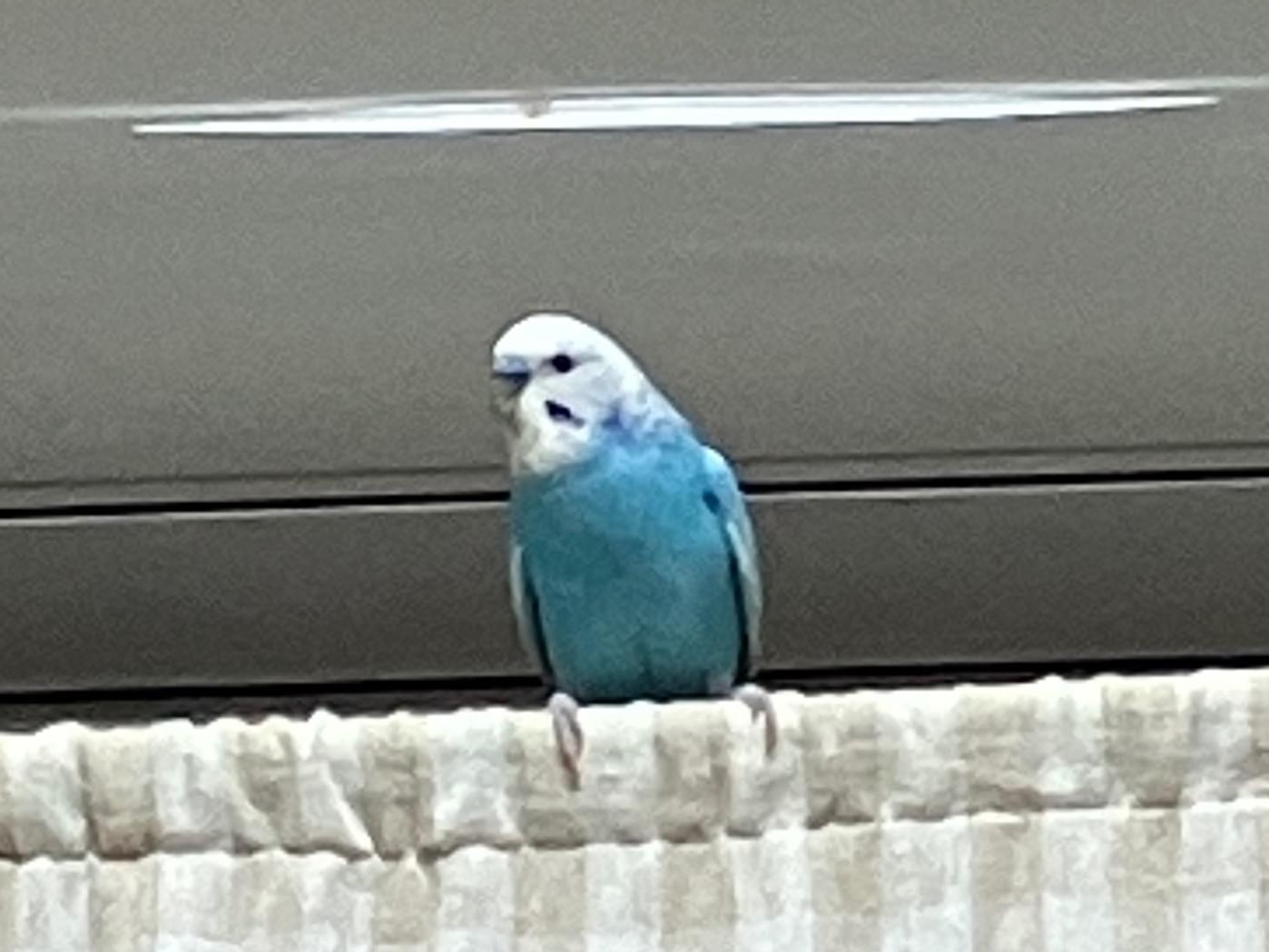 頭が白体が水色のセキセイインコです