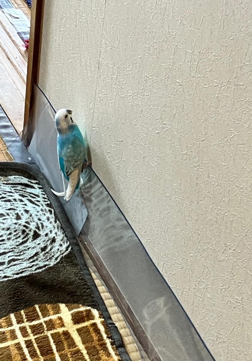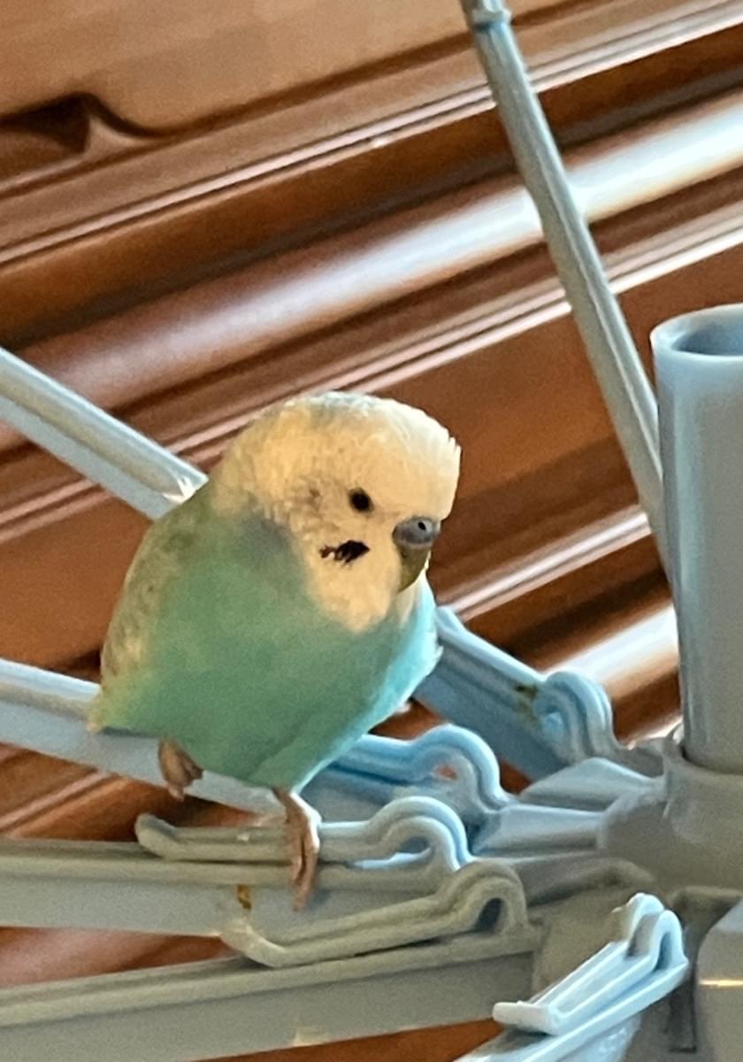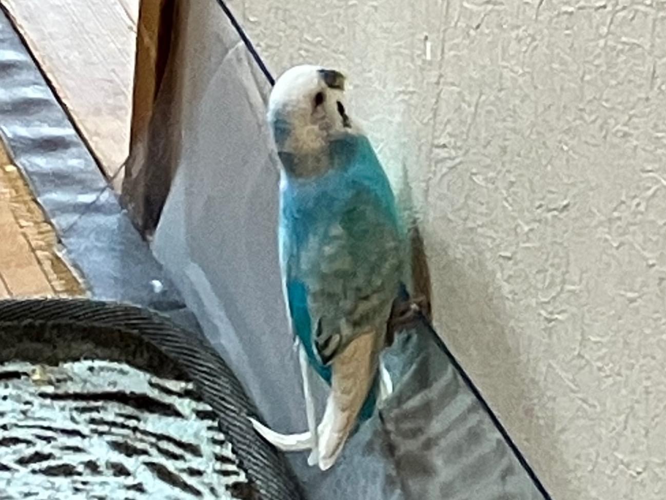 頭が白体が水色のセキセイインコです
