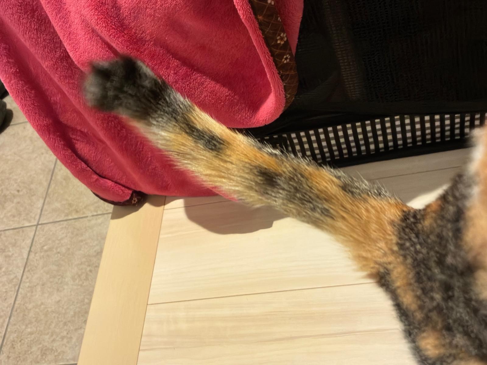 幼くて人懐こく、高い声でよく鳴きます。尻尾は長いです。