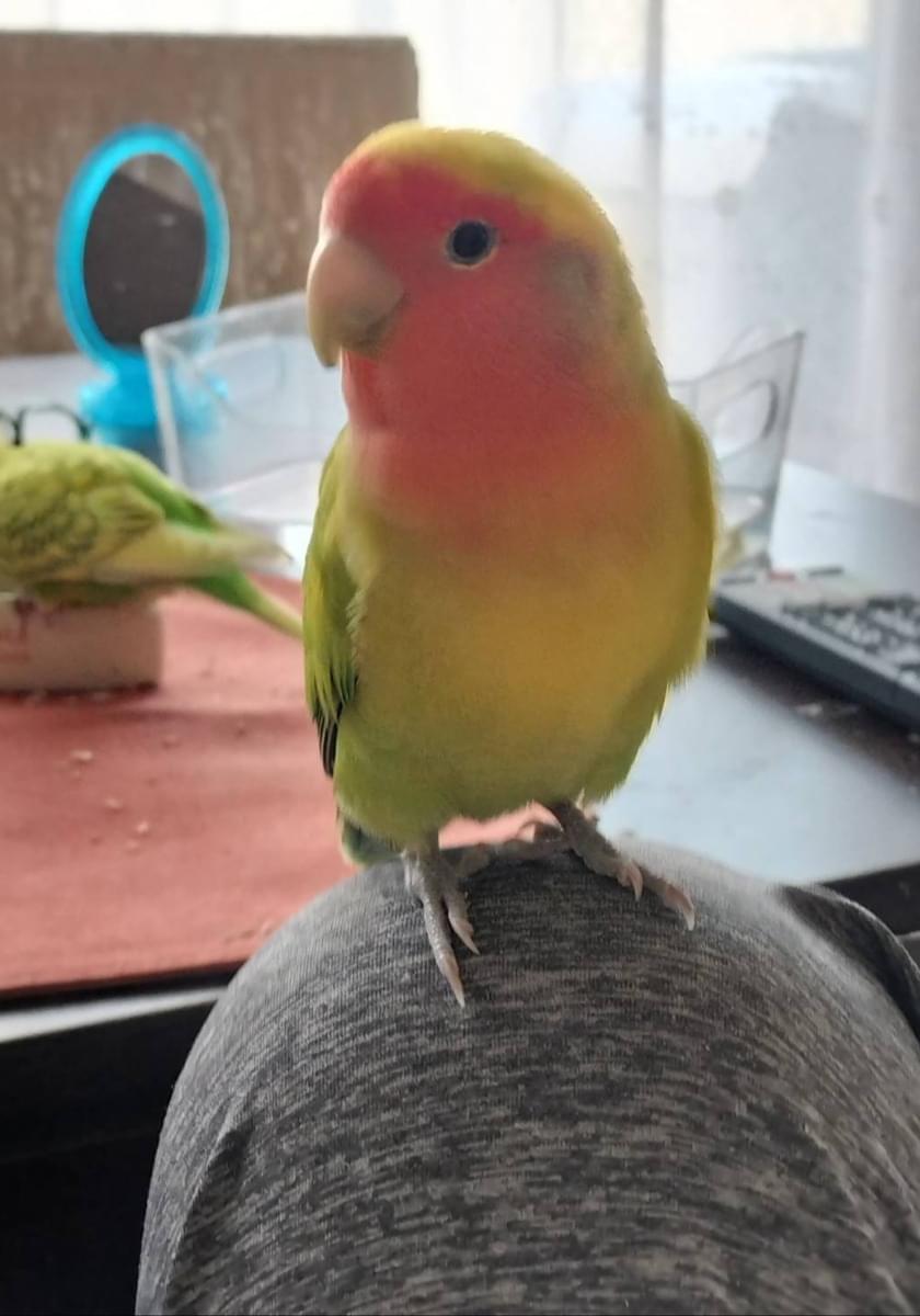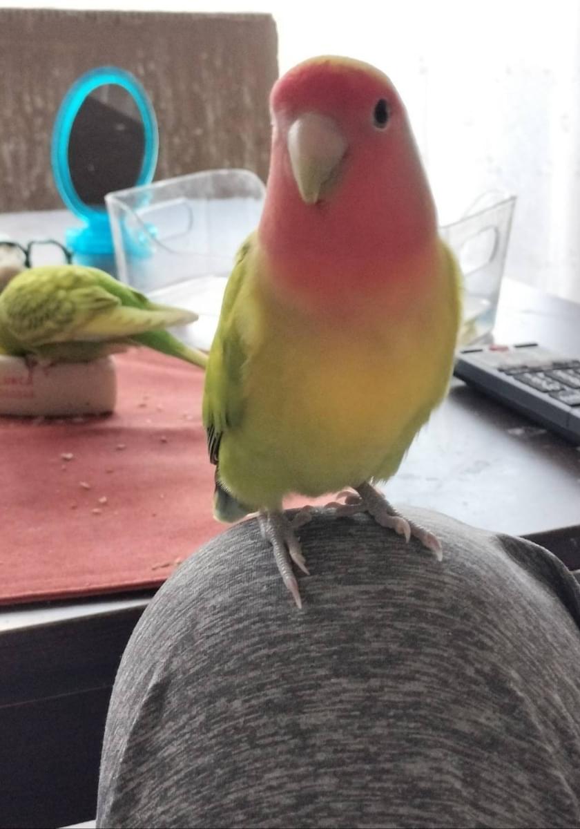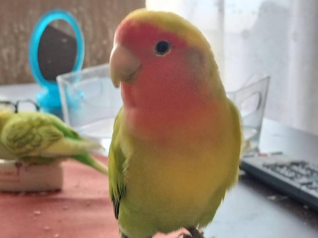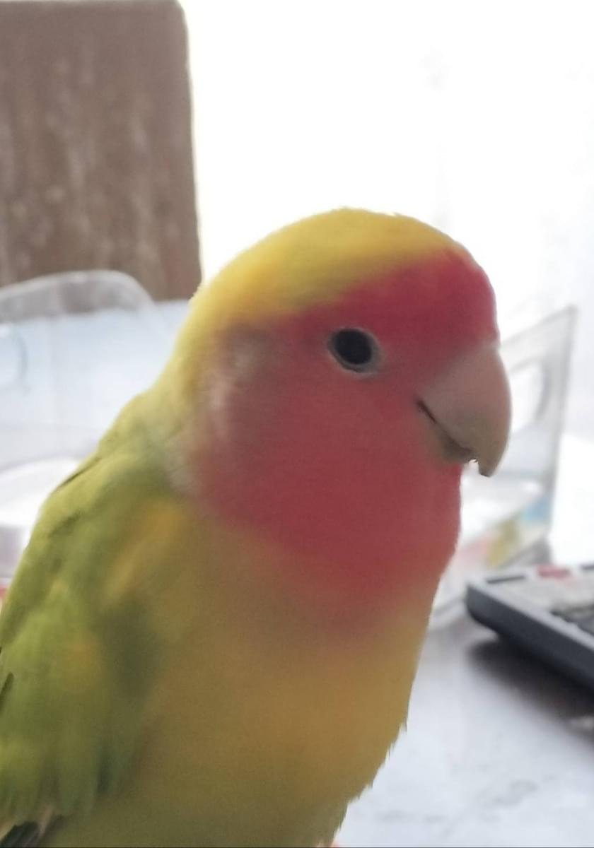 身体は黄色と黄緑色で、顔がオレンジ色のコザクラインコを探しています。鳴き声はわりと高くて、ピーとキーィが混ざったような声を出します。よろしくお願いします。