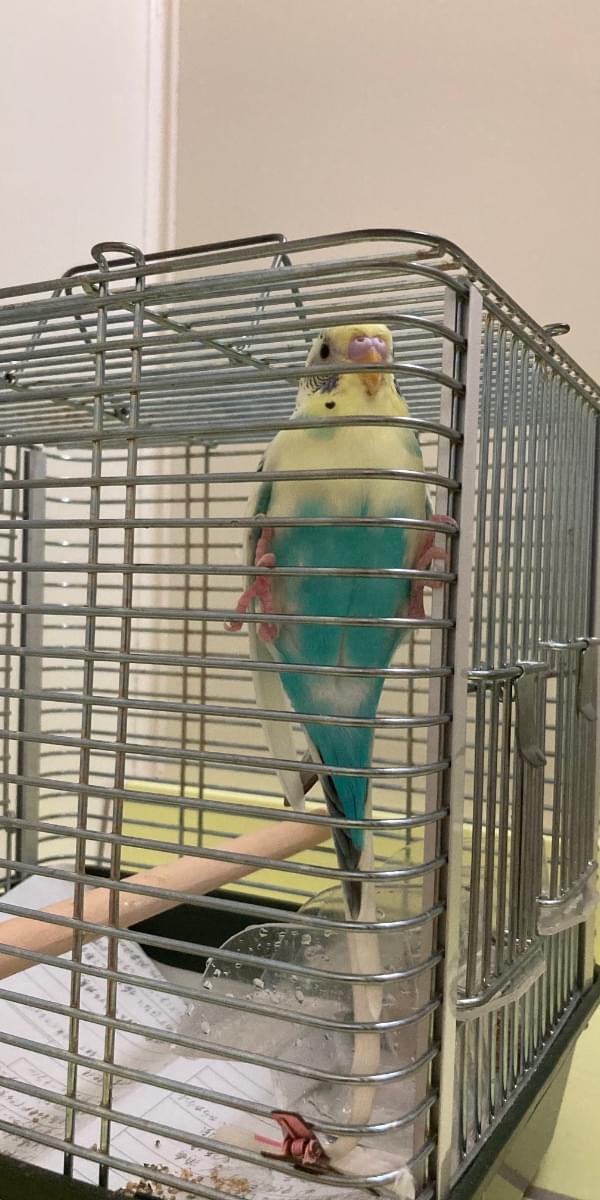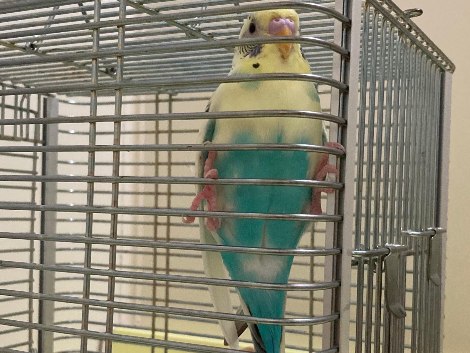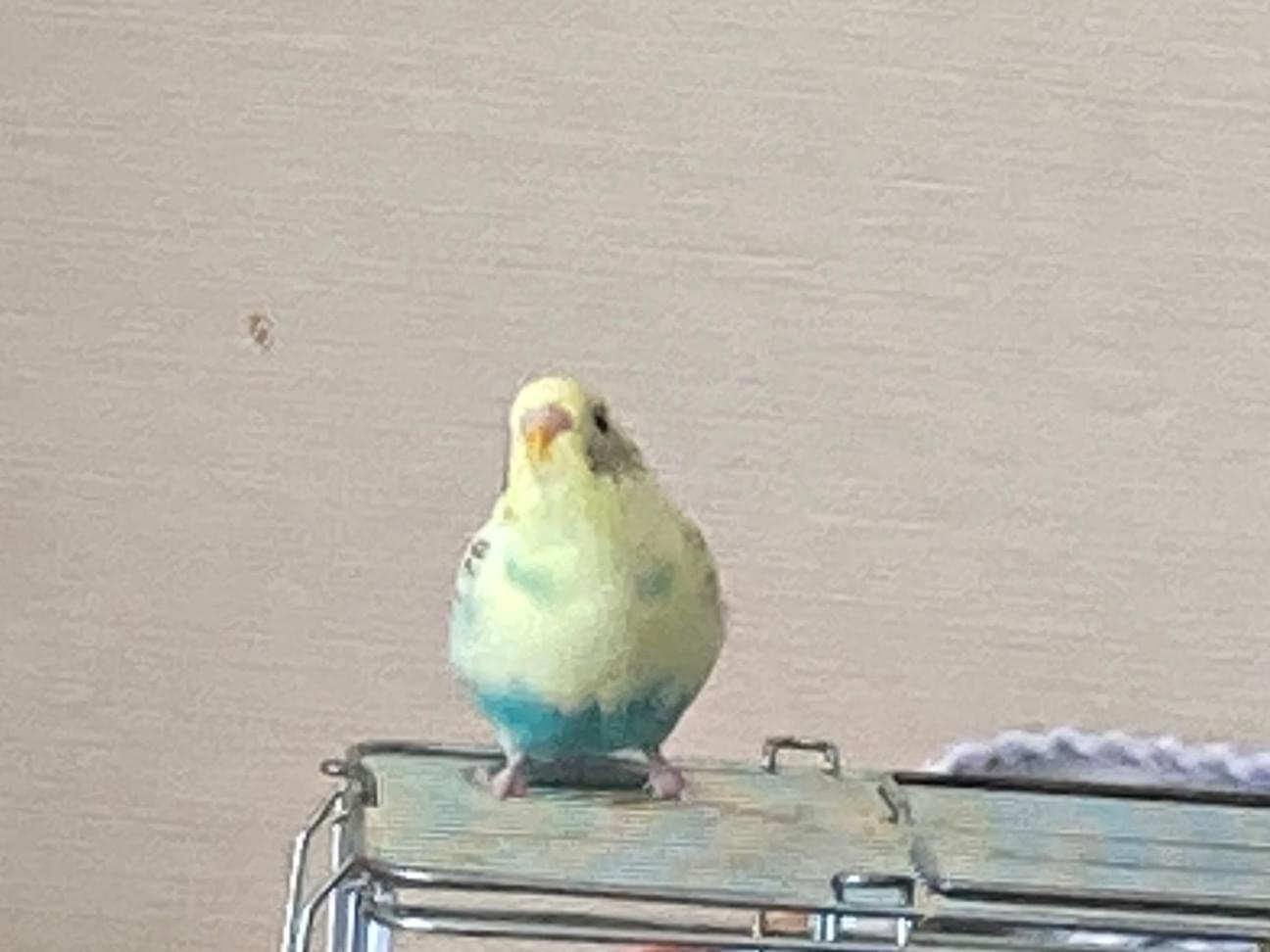 頭部分は黄色く、首周りにほくろがひとつあります。下半身は青です。人懐っこく、指や肩に乗ってきます。