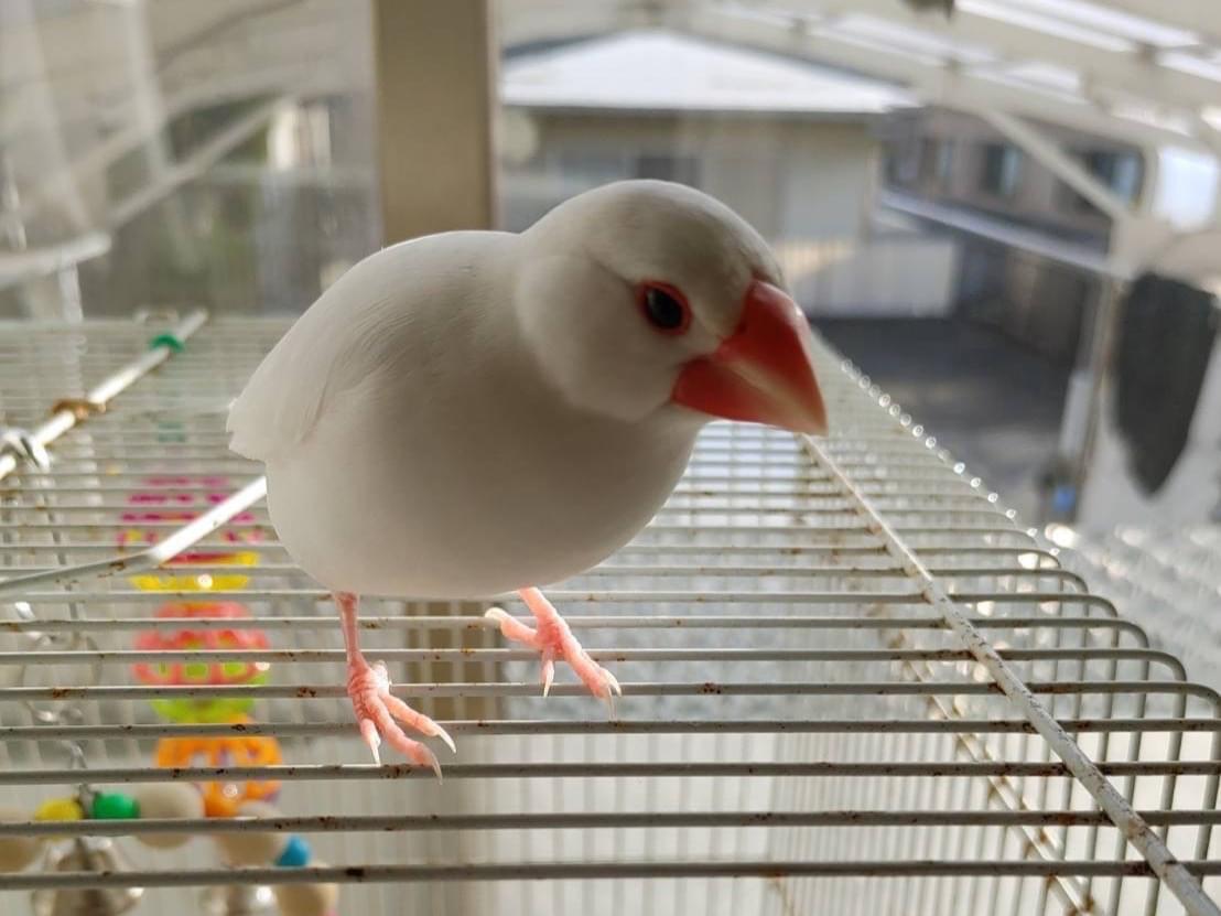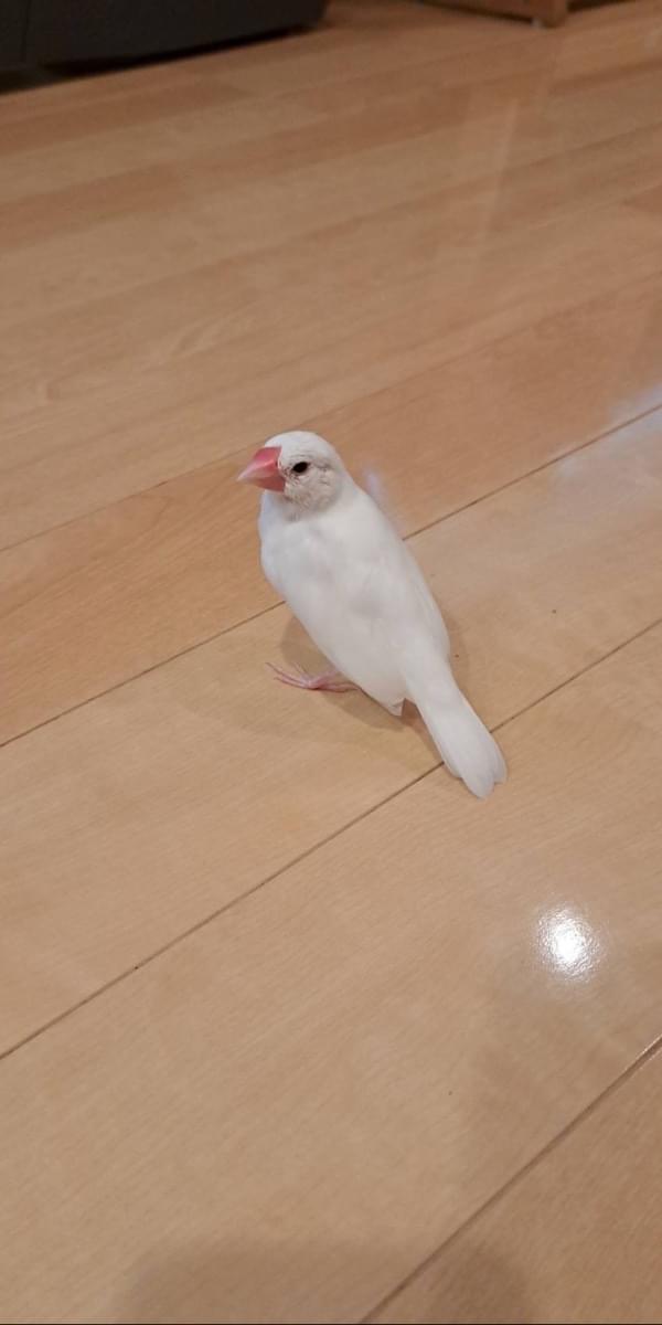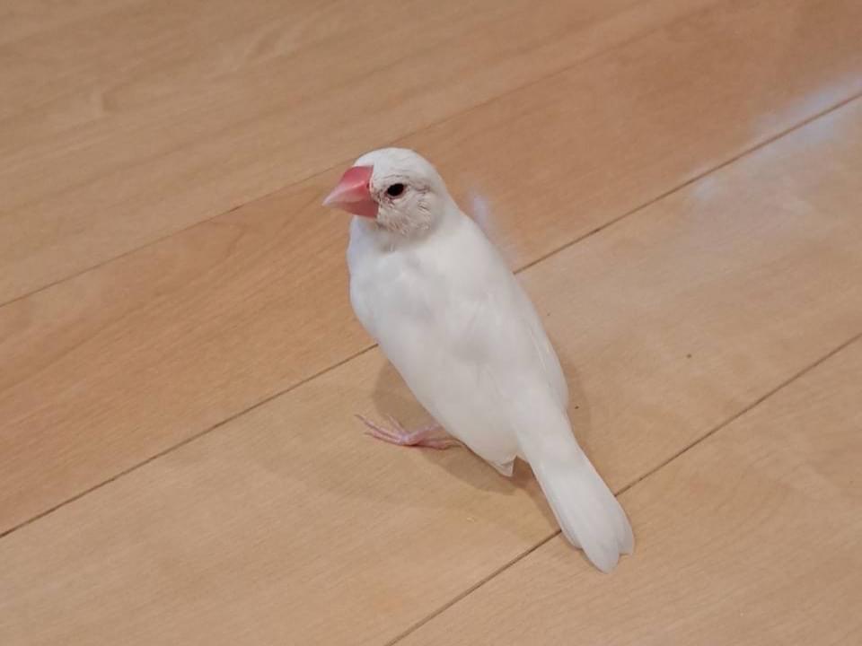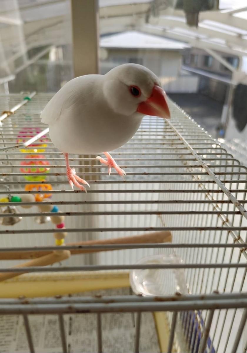 臆病な性格ですが、『チコちゃん』と名前を呼ぶと飛んできます。人懐こい文鳥です。