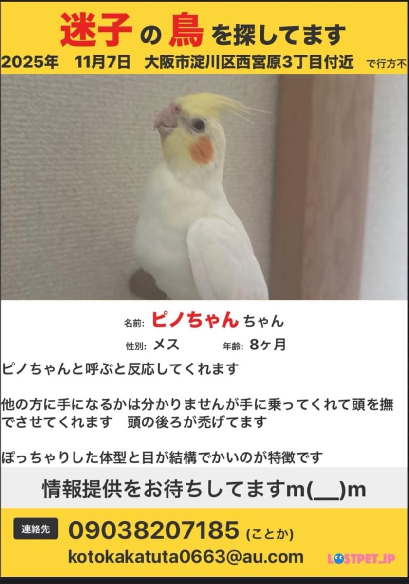 大阪市淀川区西宮原3丁目付近です 保護してる方いらっしゃいましたら本当にお願い致します