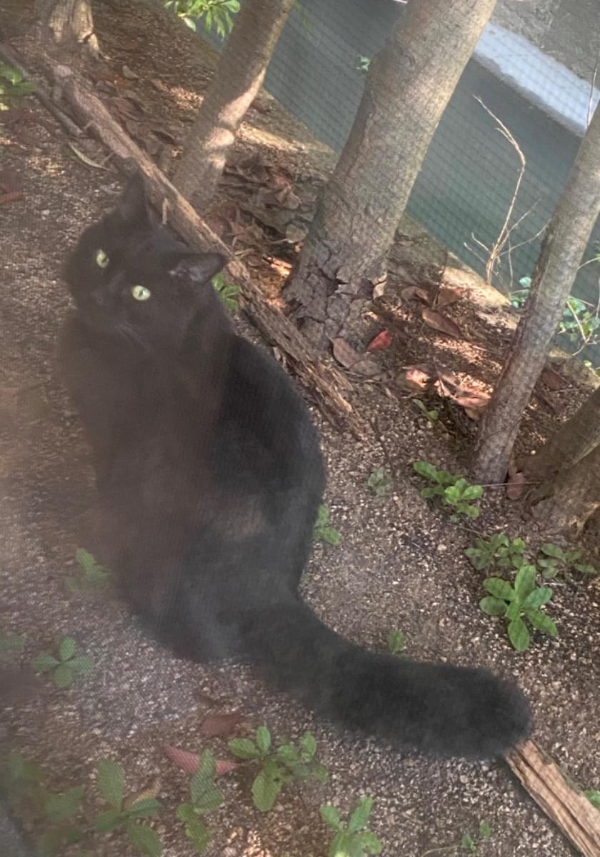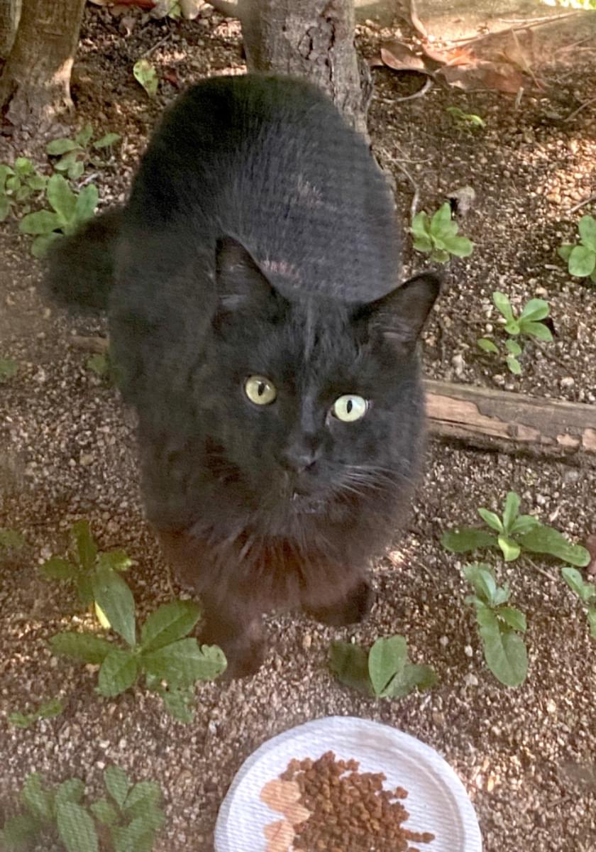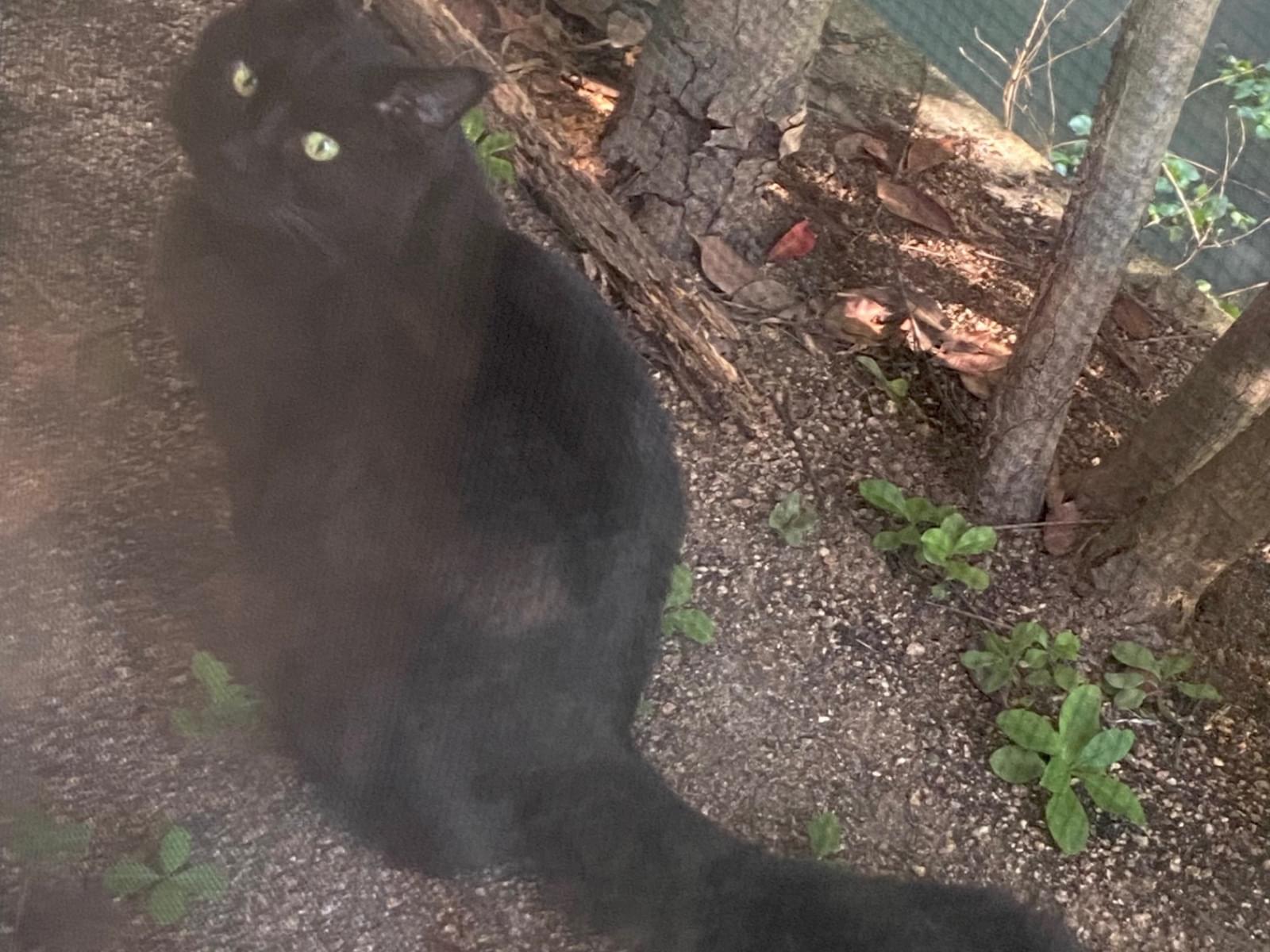 ここ数日青か水色の首輪を付けたもふもふの黒猫ちゃんを見かけます。毛並みがとても綺麗です。