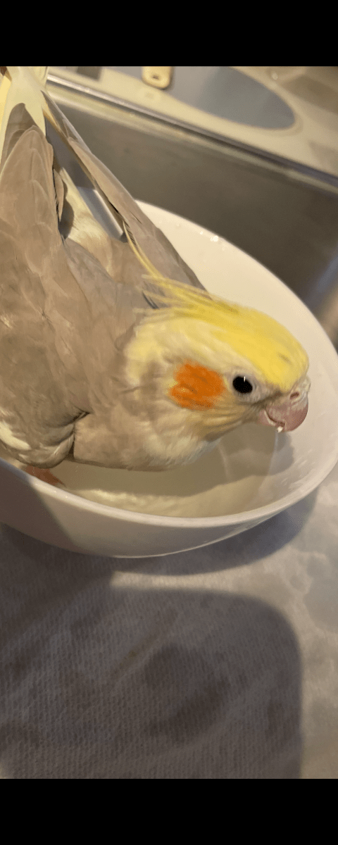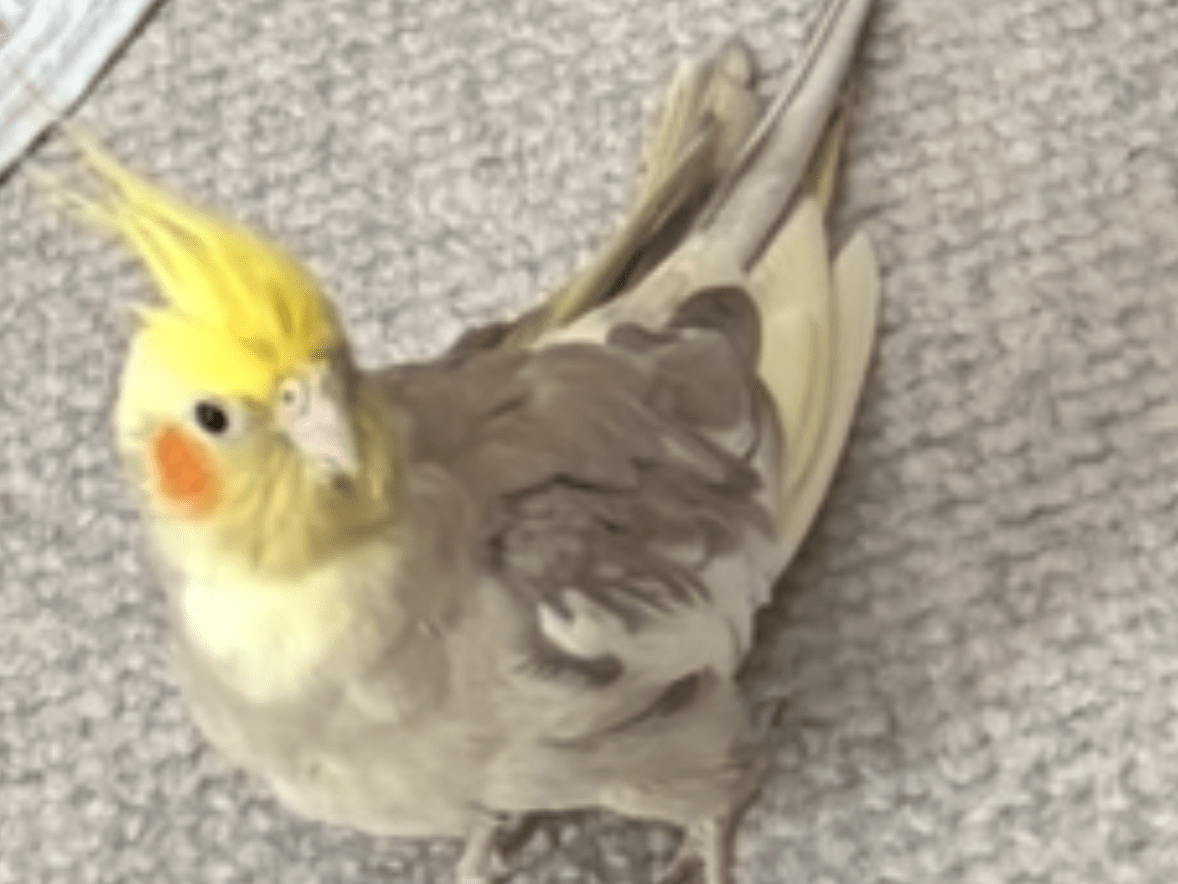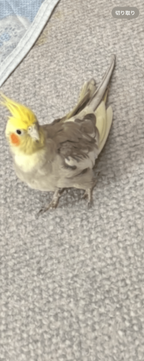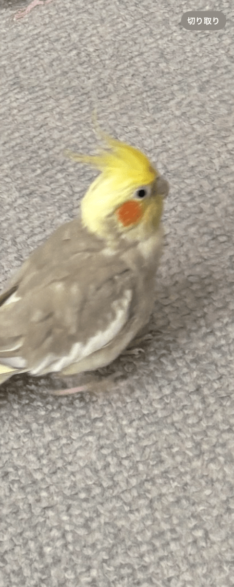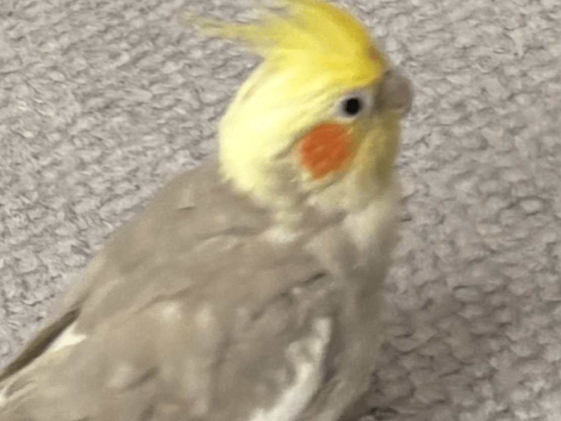 オカメインコ、パールパイド名前は、ねねです。冠は黄色、ほっぺは鮮やかなオレンジ。