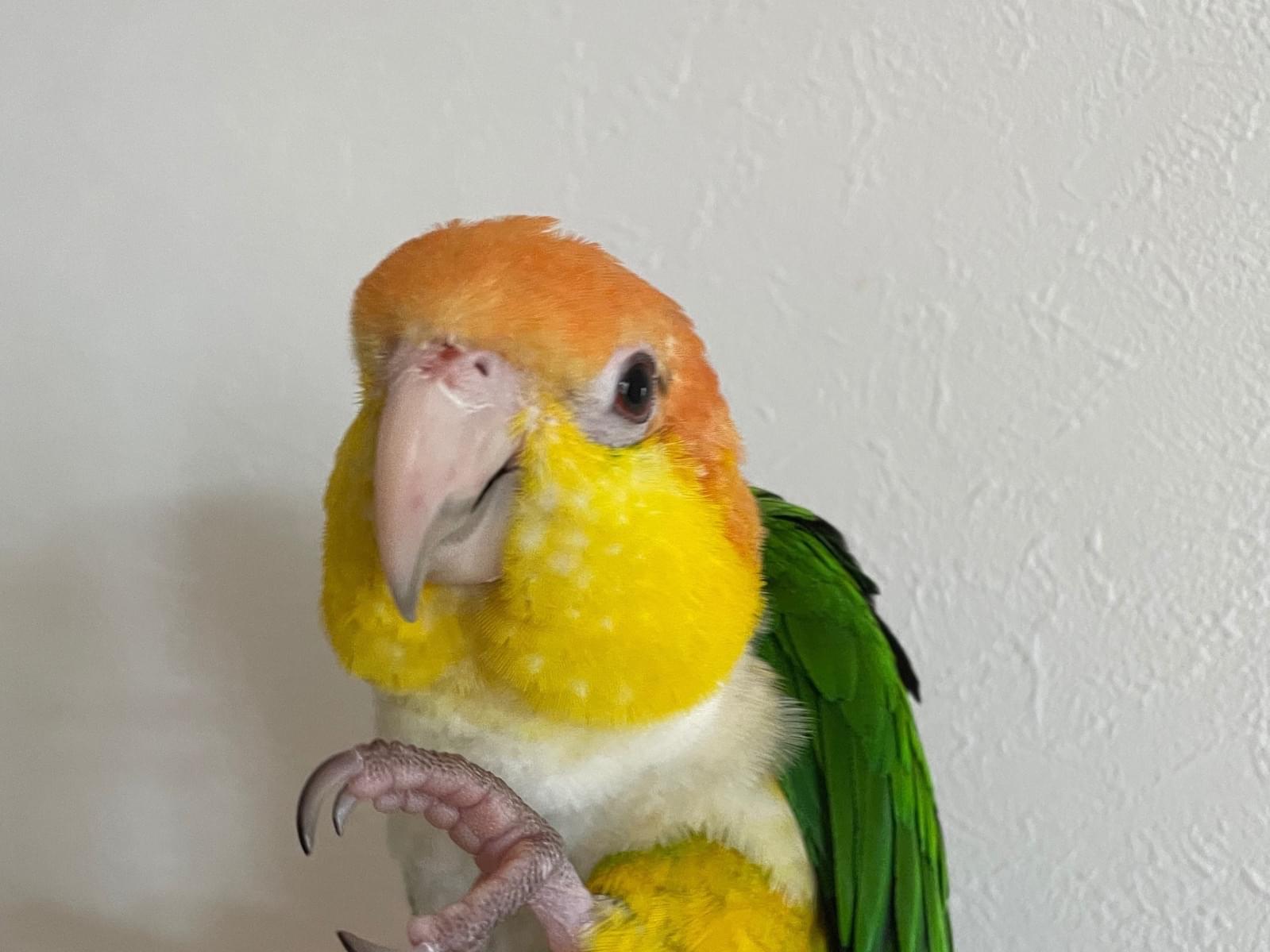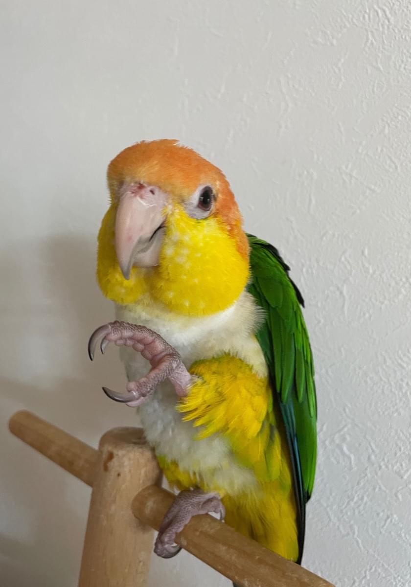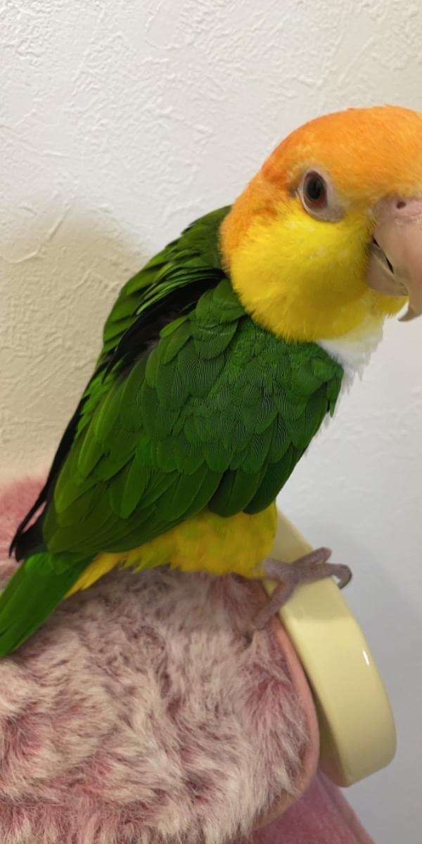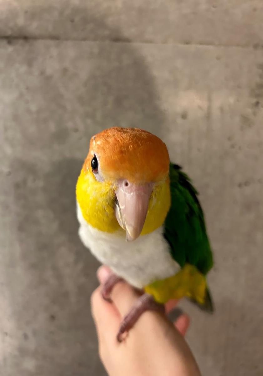 お昼過ぎにカゴから逃げ出して飛んでいってしまいました。怖がりで人見知りな子です。ウグイスの鳴き真似とピタゴラスイッチを歌えます。