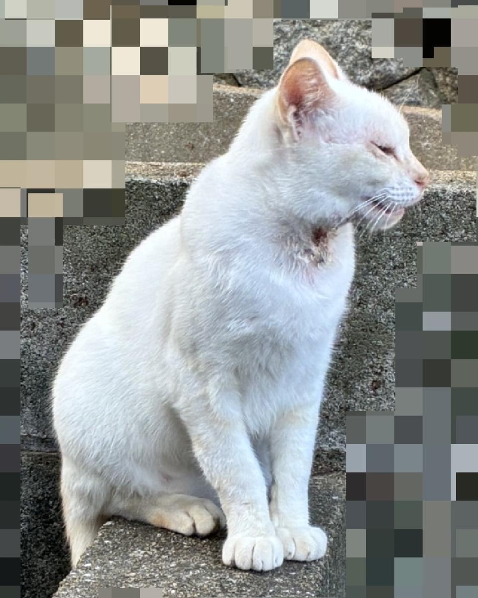 野良ちゃんで、最近警戒心が薄れて触れさせてくれるようになったところ、ケガをしていたので治療と去勢のため近々病院に連れて行こうとしていた矢先でした。