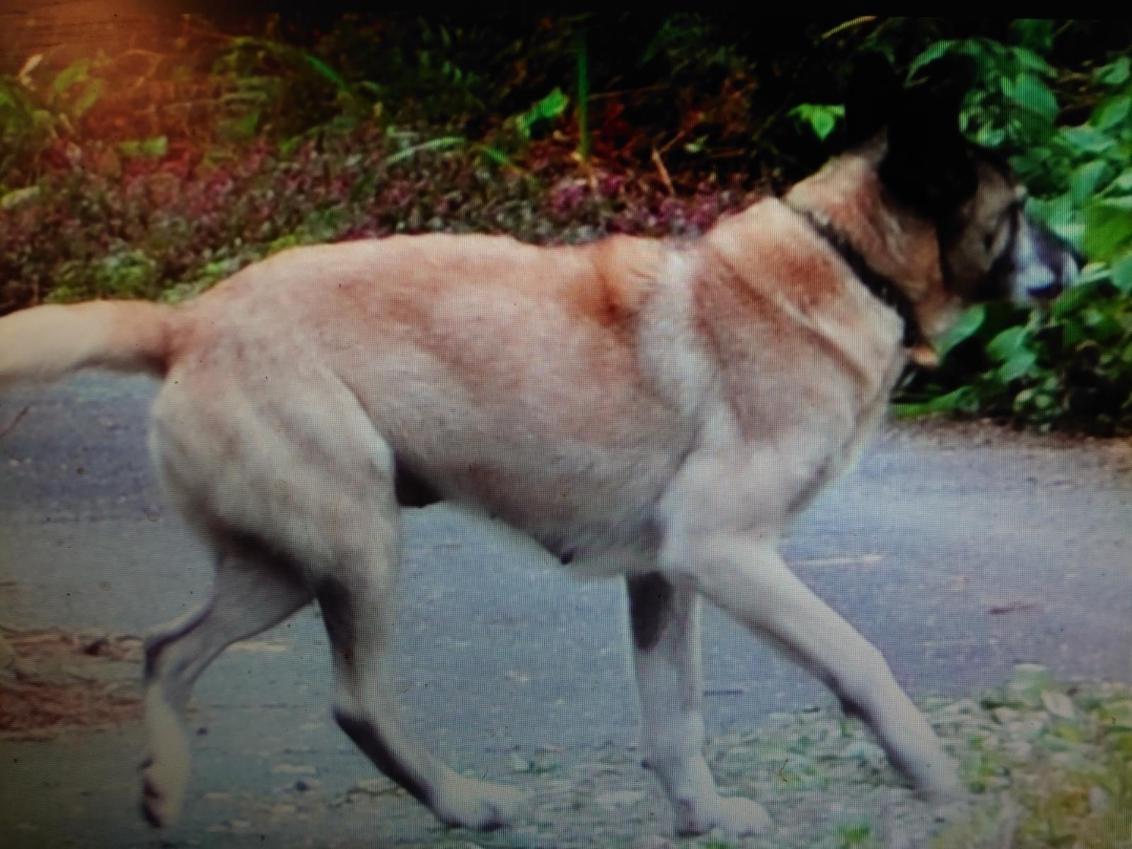 大人しそうな犬です。怖がって近くに寄ってくれないので知らない人の捕獲は難しそうです。