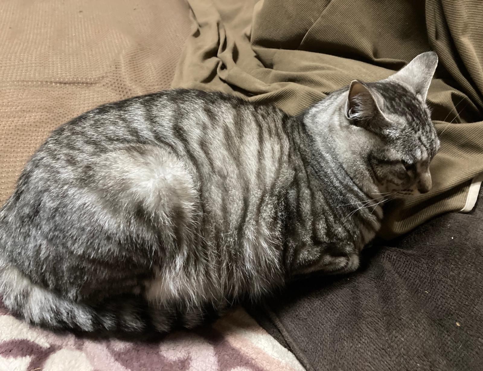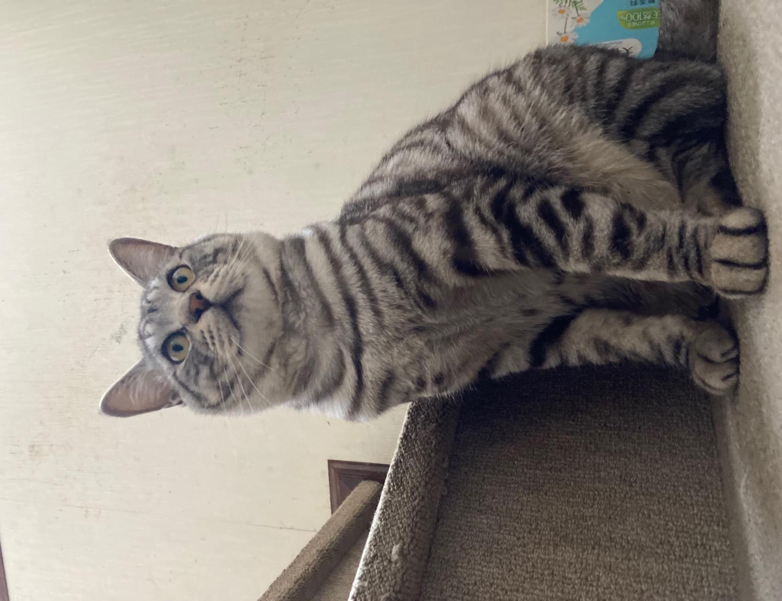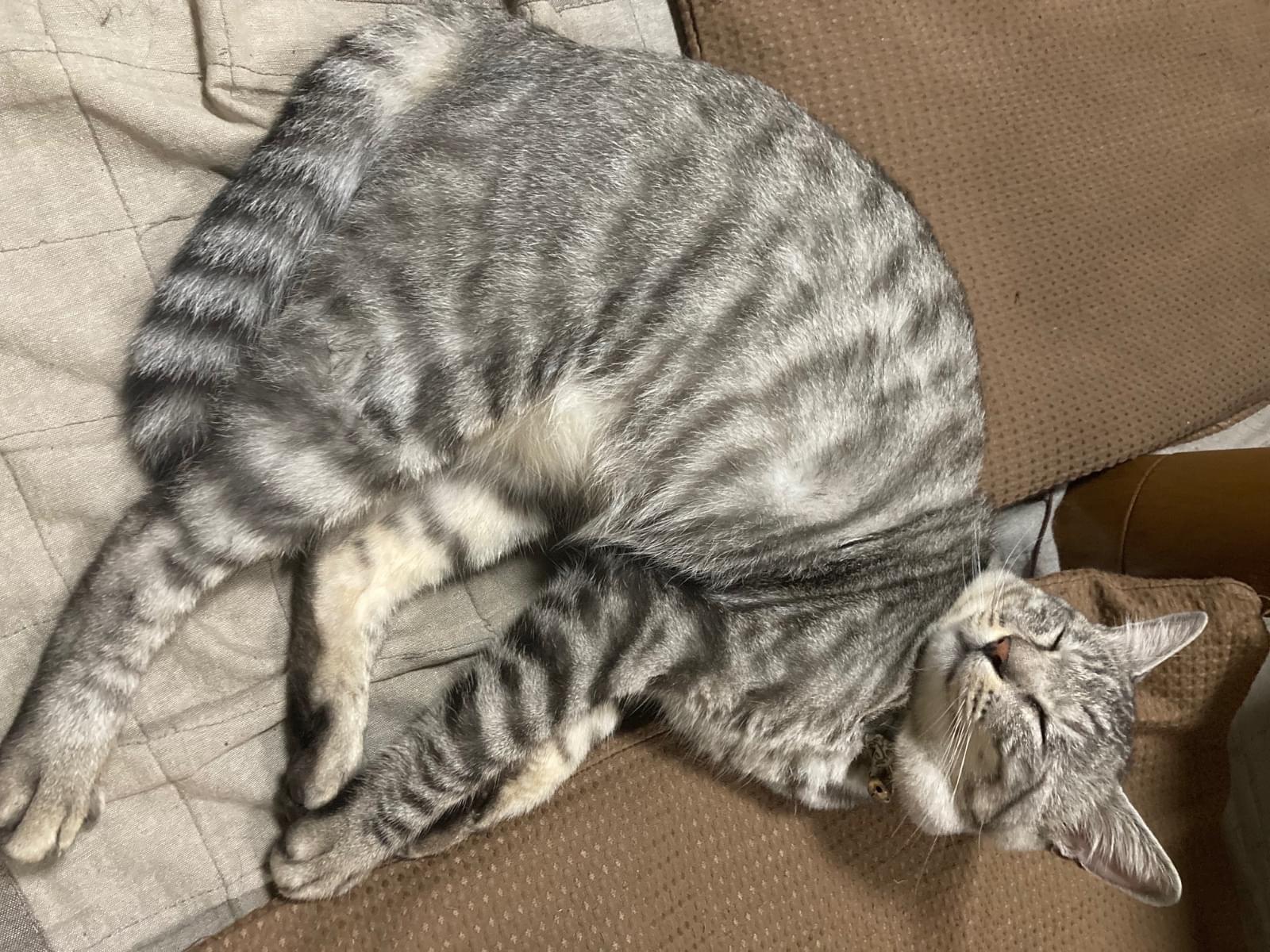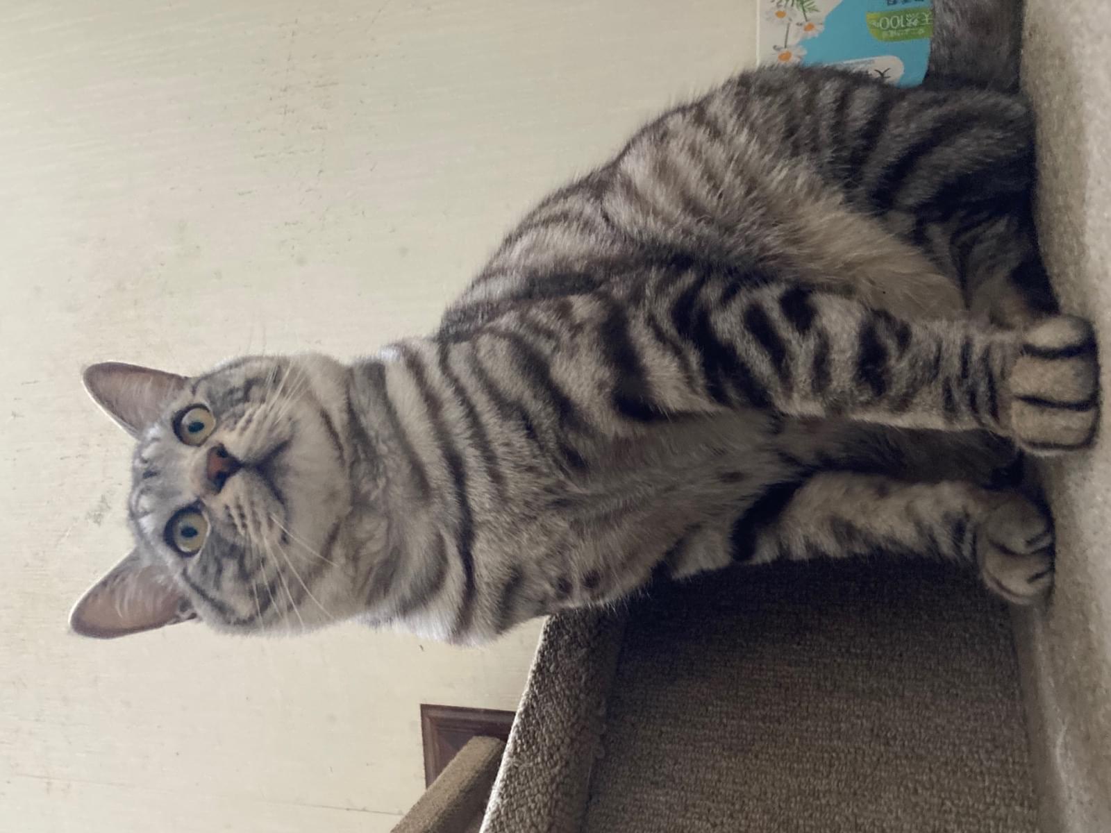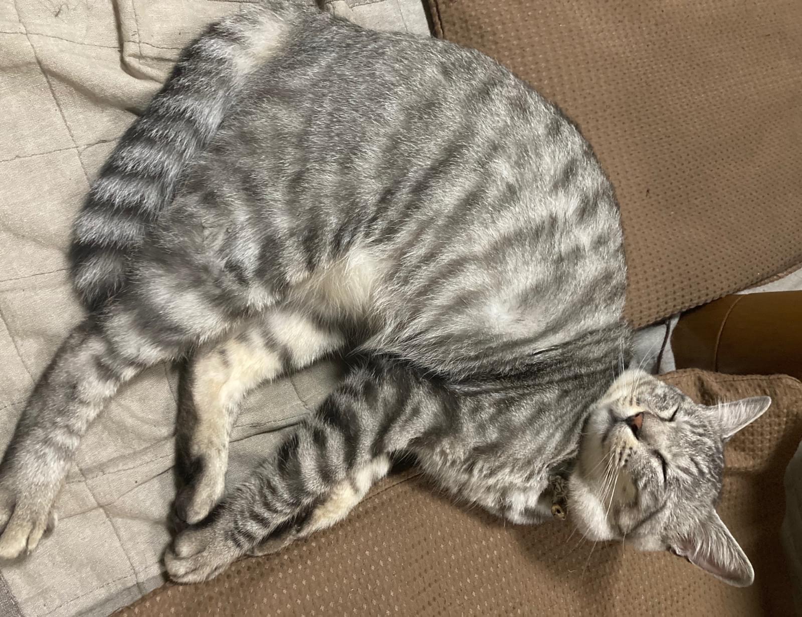 サバトラの体の所々が黄ばんでる猫を探してます