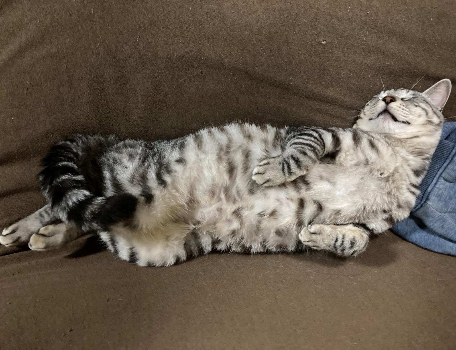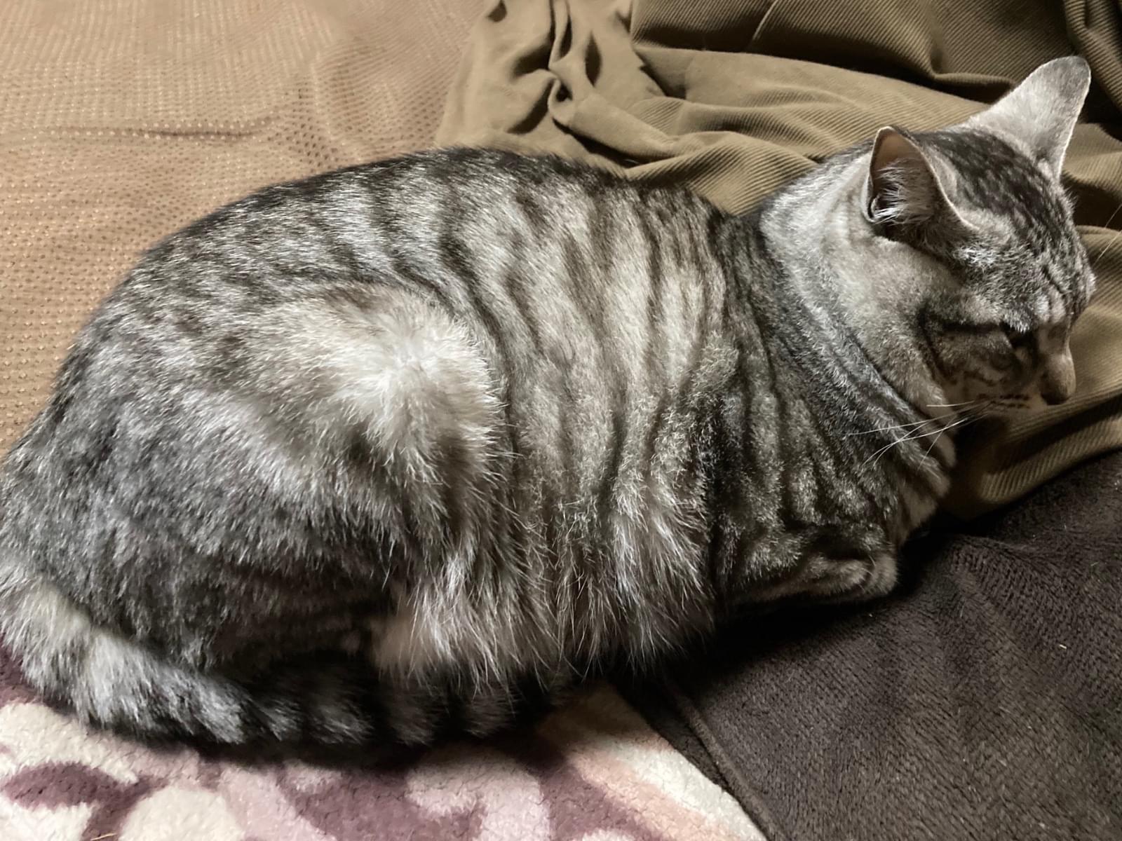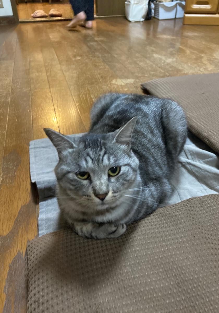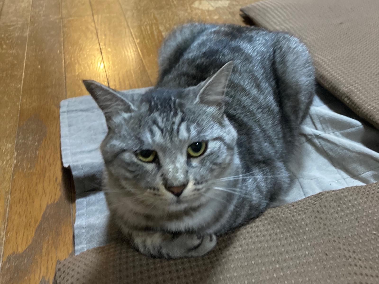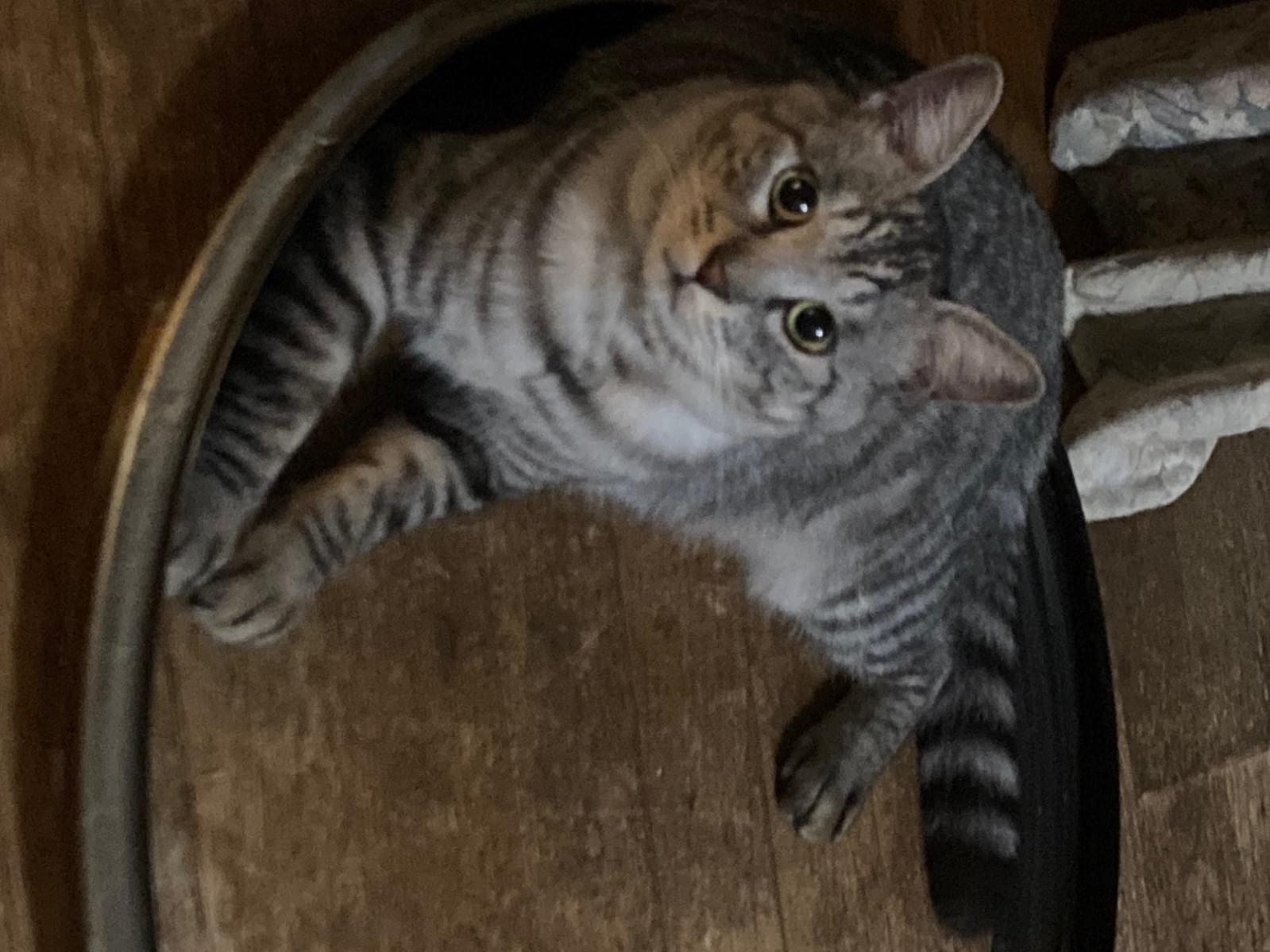 サバトラの体の所々が黄ばんでる猫を探してます