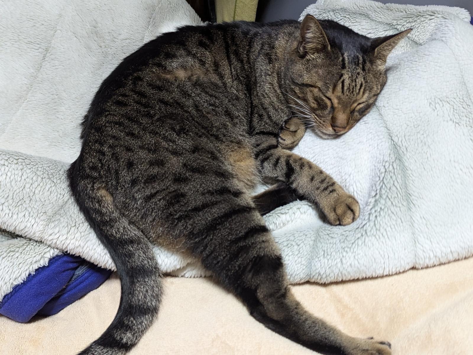 生後3ヶ月くらいまで親猫と一緒に野良生活、その後保護しましたが基本的に警戒心強いです