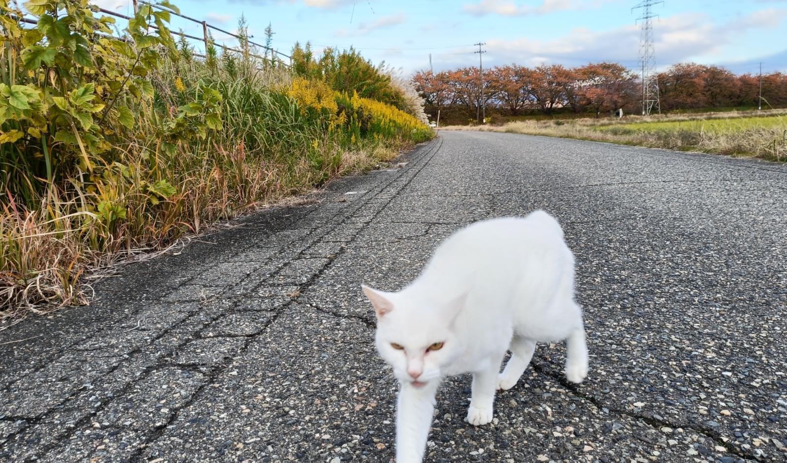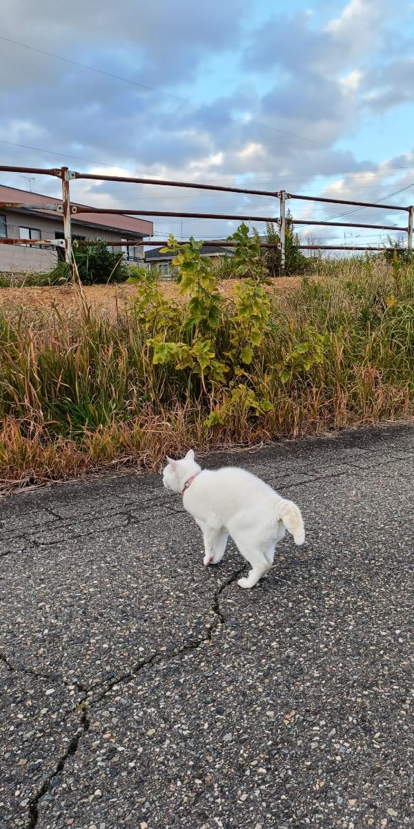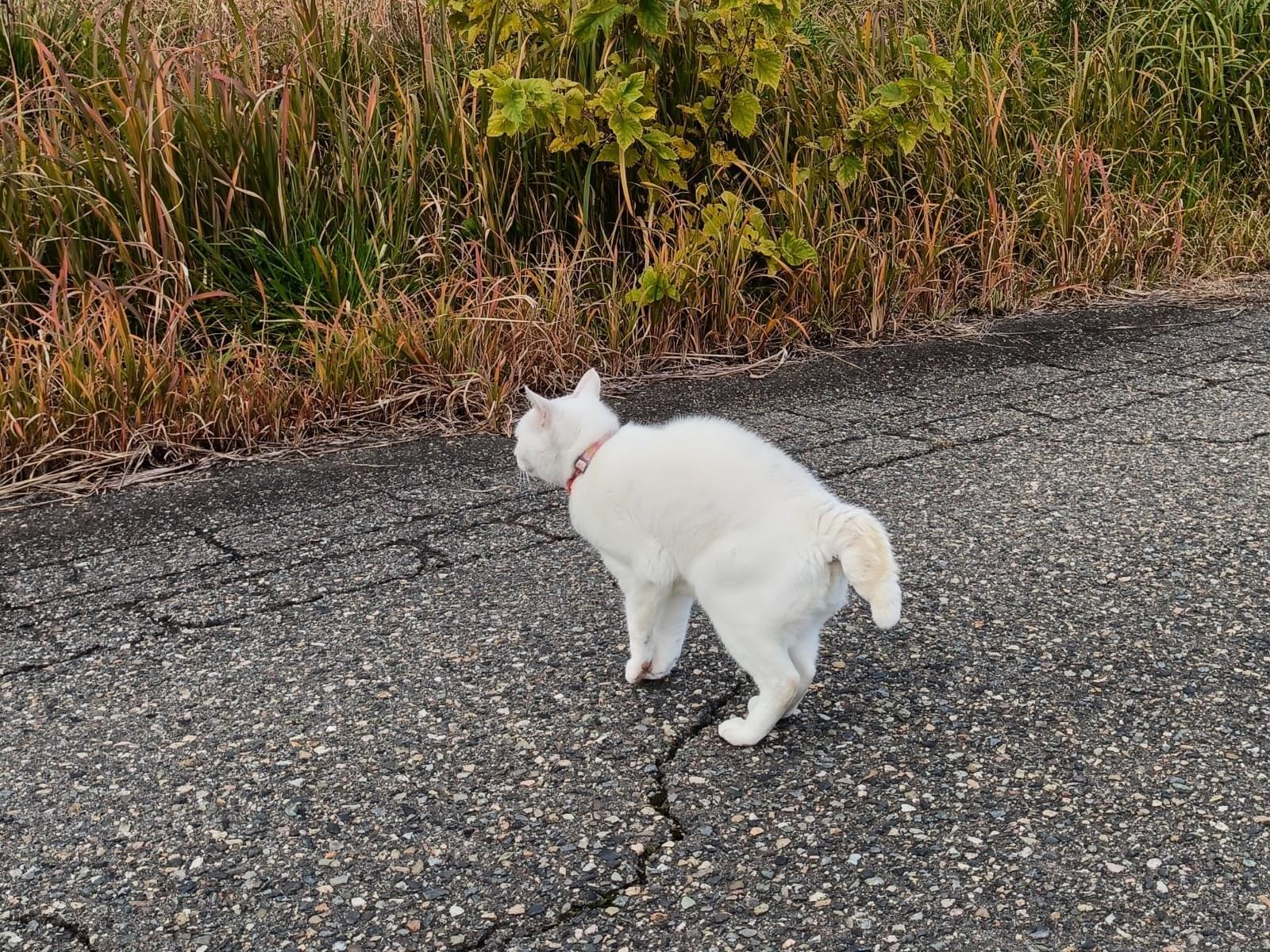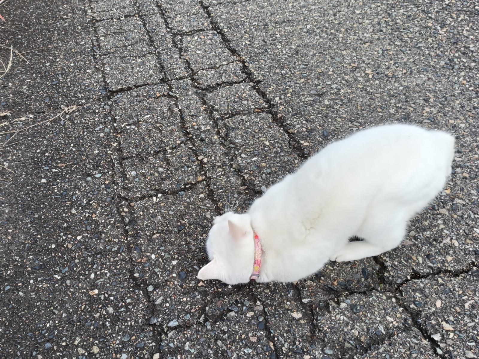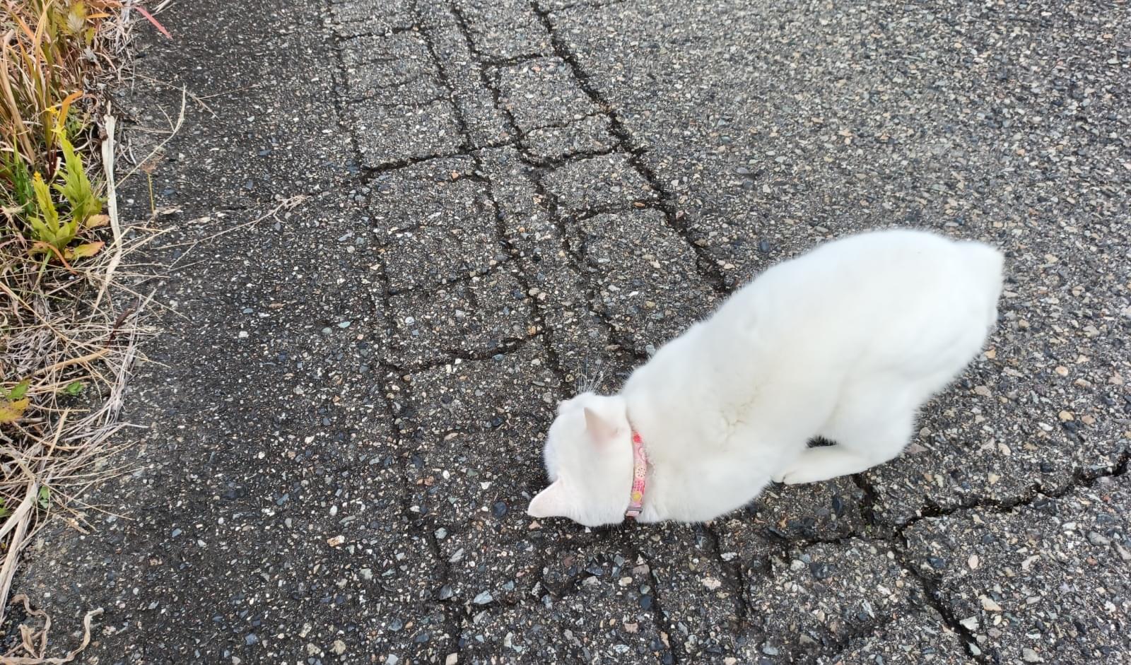 首輪のある白猫、人懐っこい