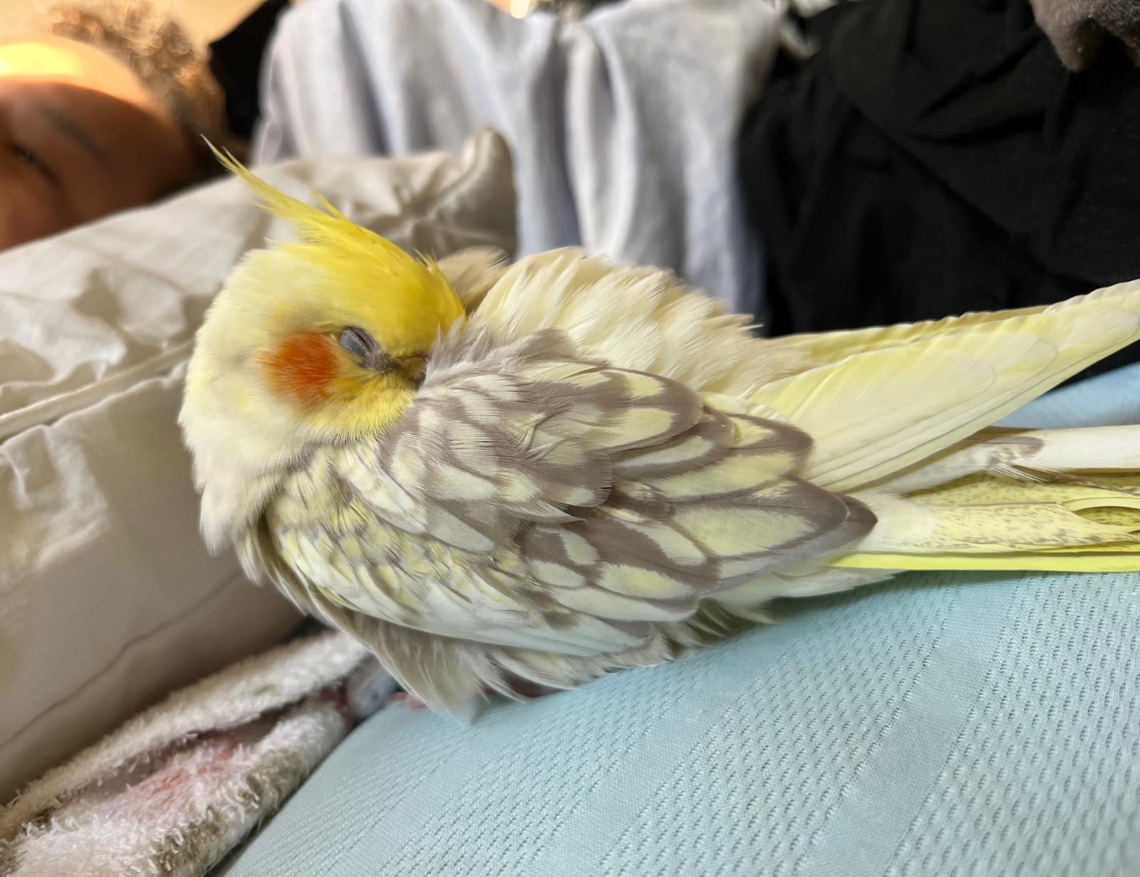 她不会说话,但叫她的名字时会有反应。她非常亲人,喜欢停在人的肩膀或头上。