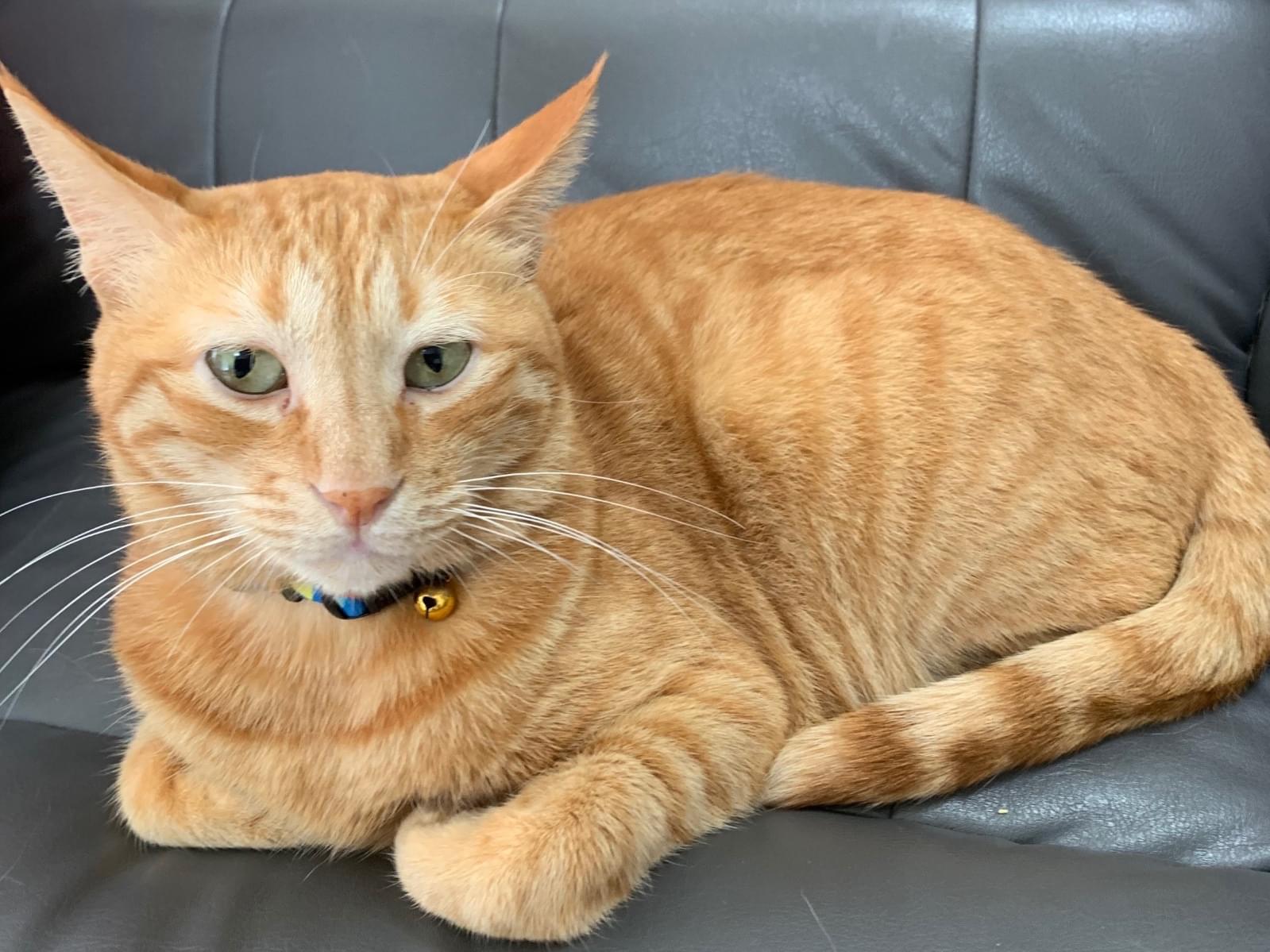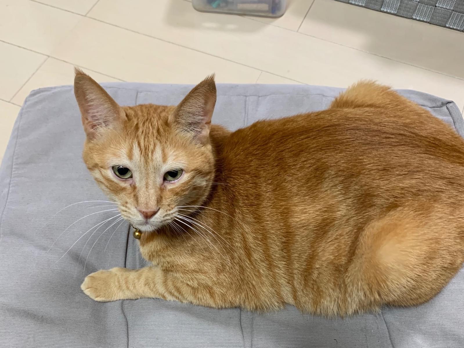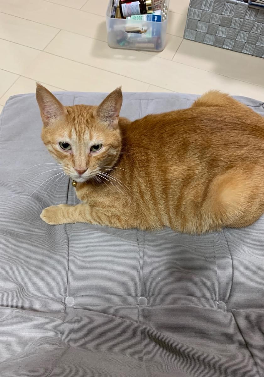 首輪は青っぽい鈴つきの首輪をしていますが、外れている可能性もあります。