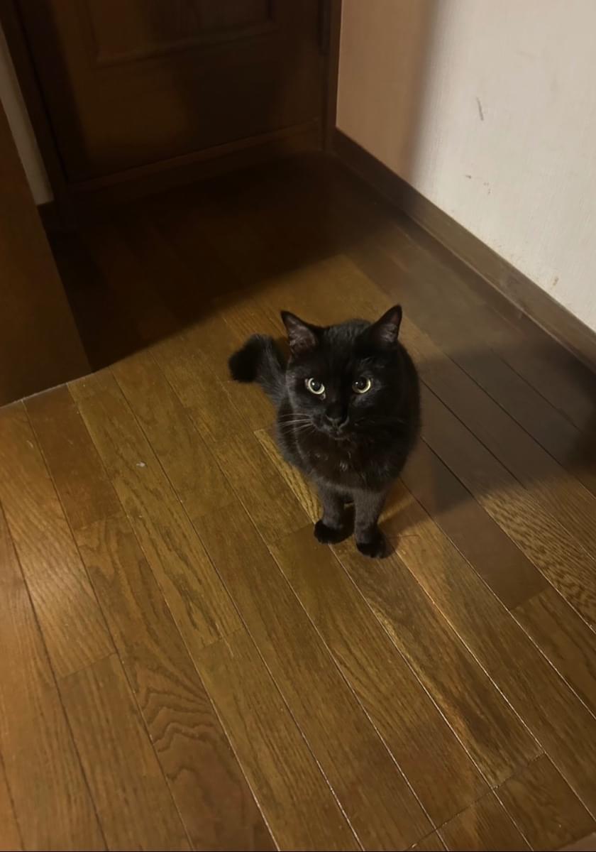 黒猫なので柄の特徴は無く、カギ尻尾が唯一の特徴かなと思っています。