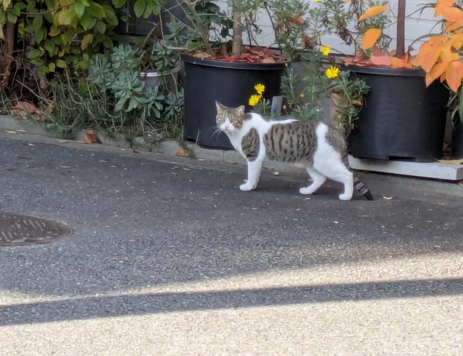 耳カットもなく、野良ちゃんにしては手足もとてもきれいな猫さんなので、脱走かもと思い掲載させていただきました。