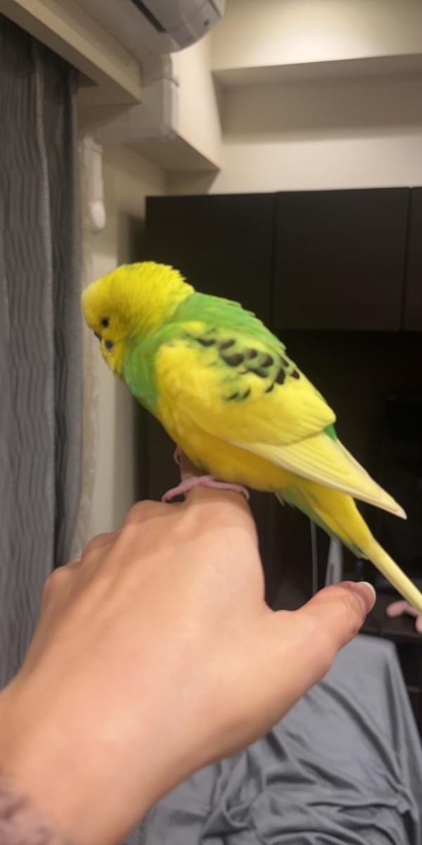 アカネさんが投稿していたセキセイインコと同じ個体と思われるインコがマンションのベランダに来ていたので、先ほど保護しました。