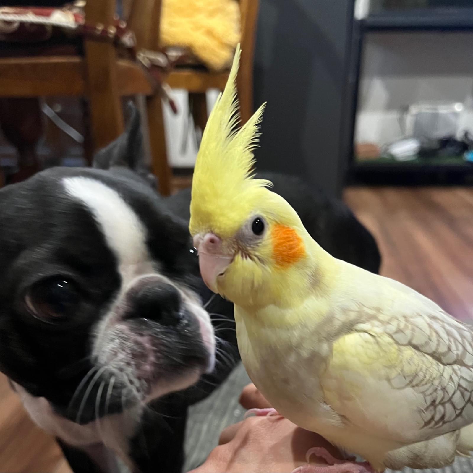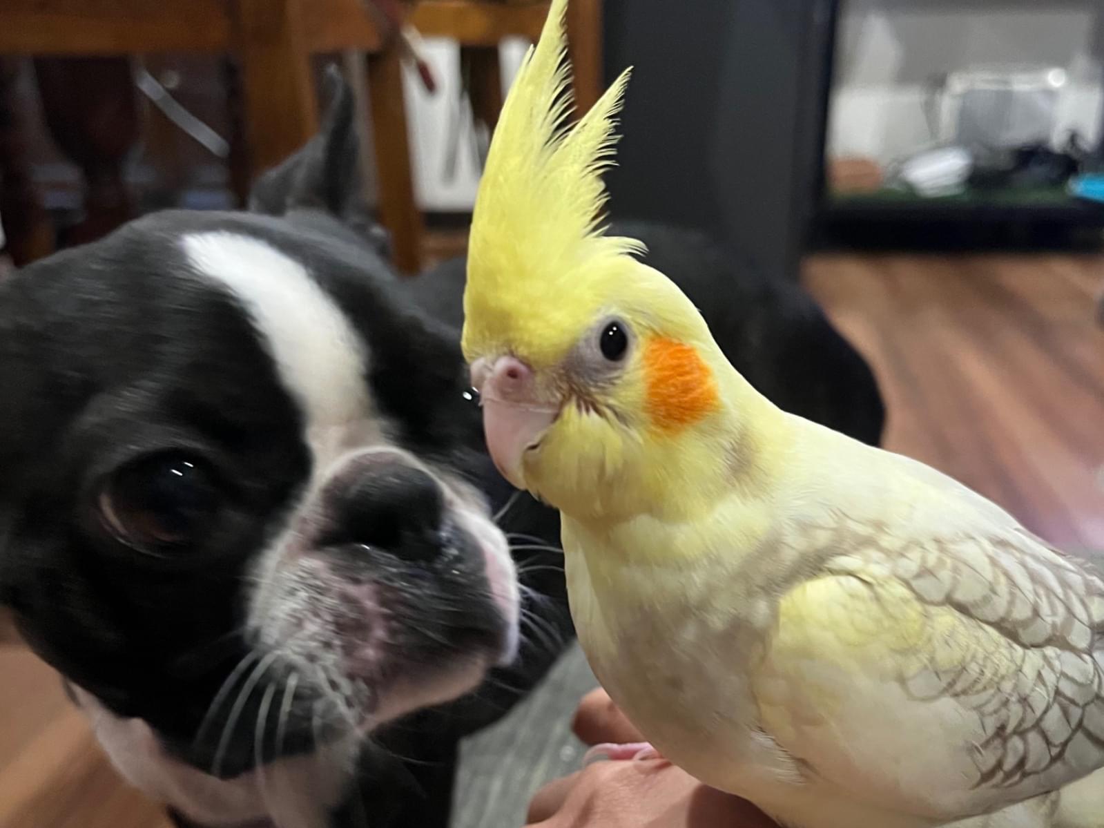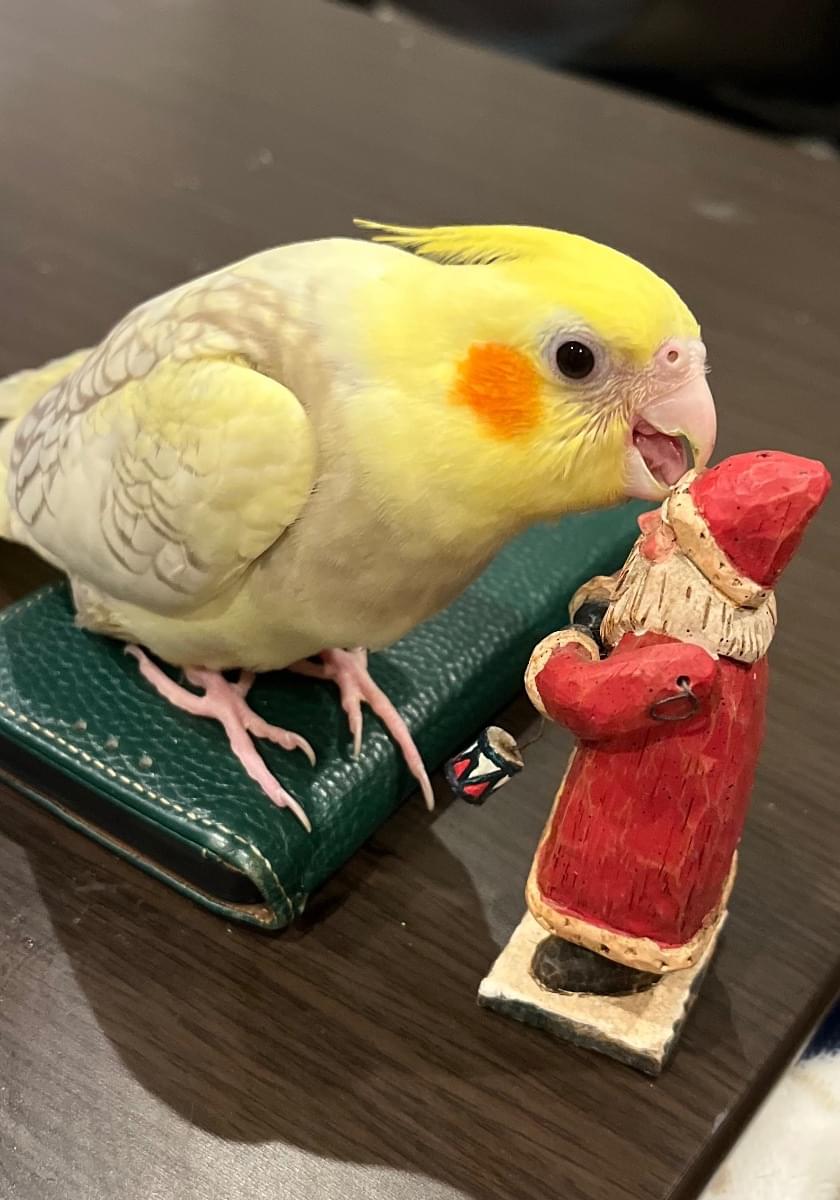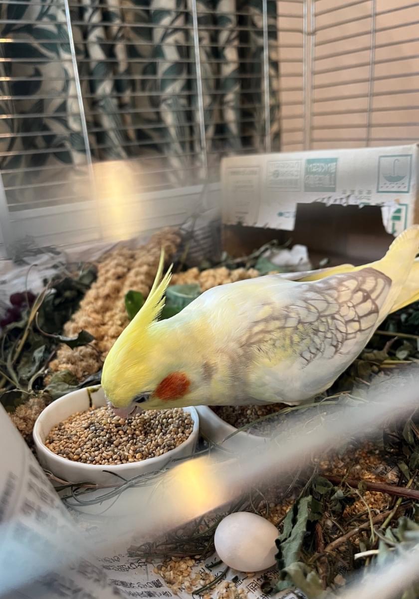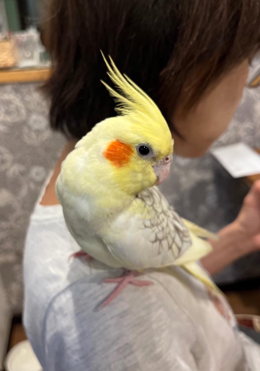 11月15日16時頃、背中にくっついてたのに気づかず外に出てしまいました。ポリーと呼ぶと鳴いて返事します。しゃべりません。おいでと言うと指に乗るかもしれません。