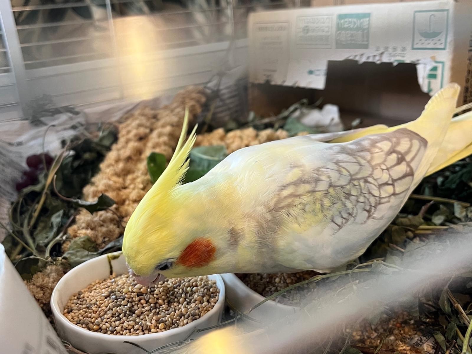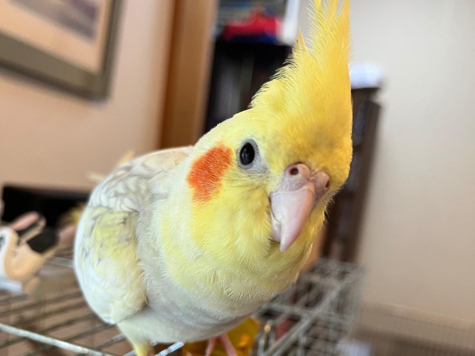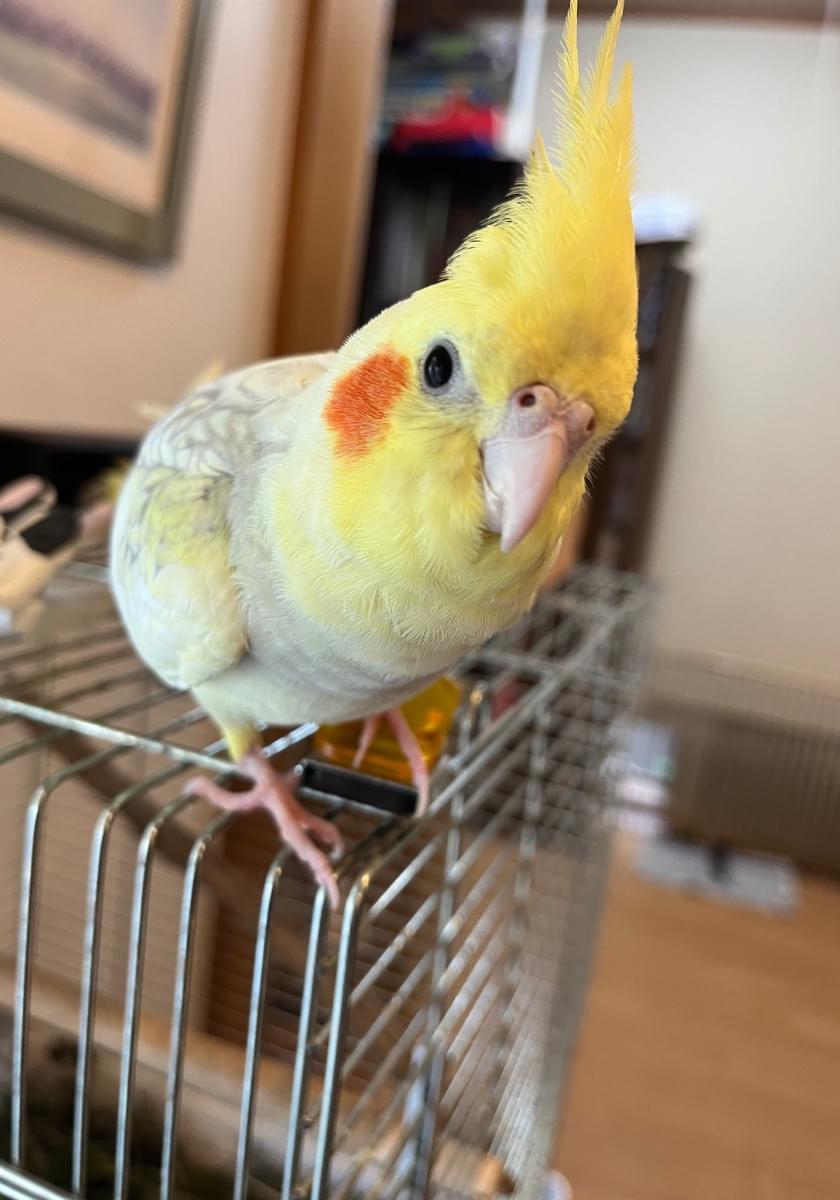 オカメインコのポリー。黄色に灰色の模様、東村山〜東久留米、所沢辺り