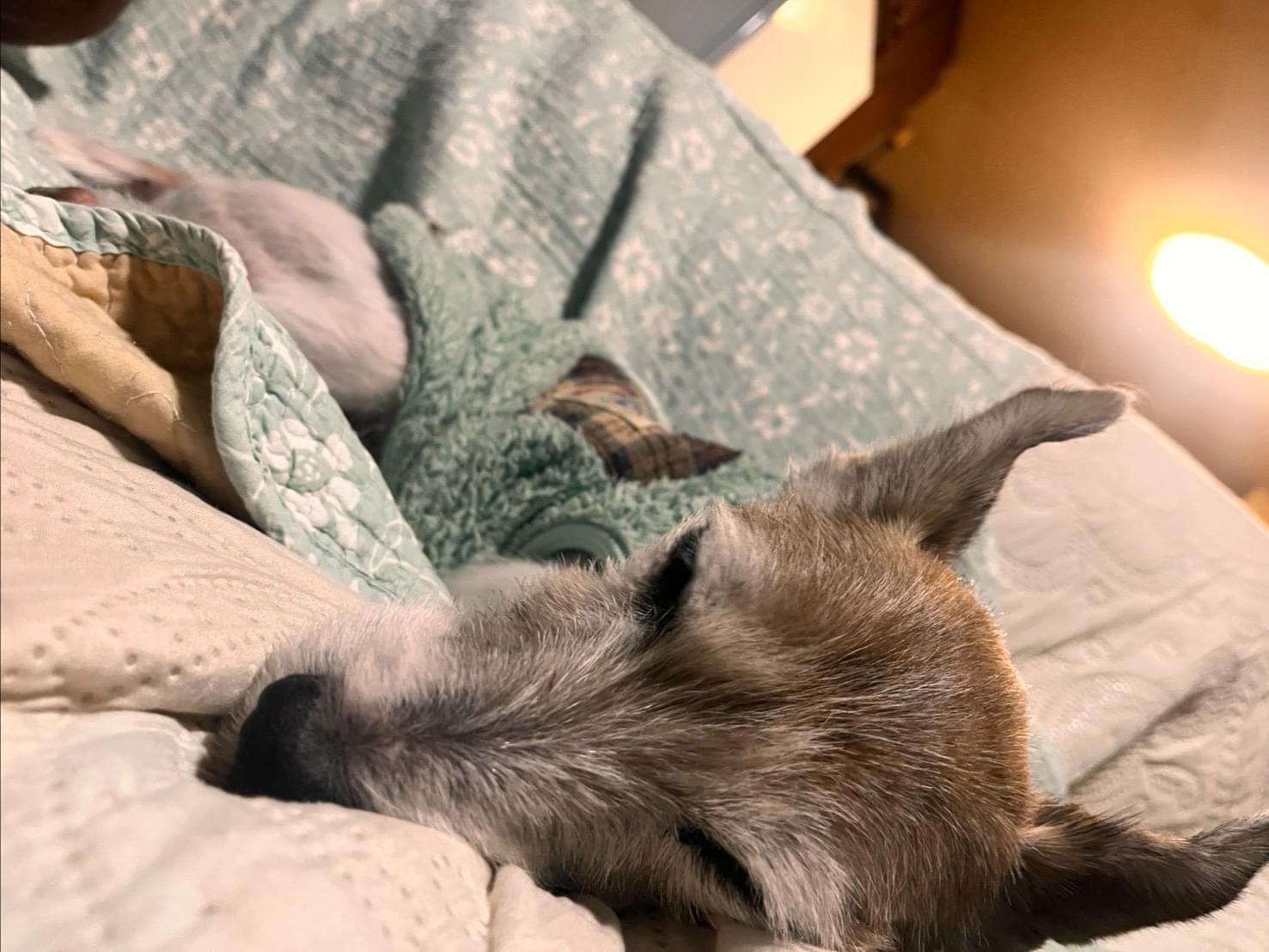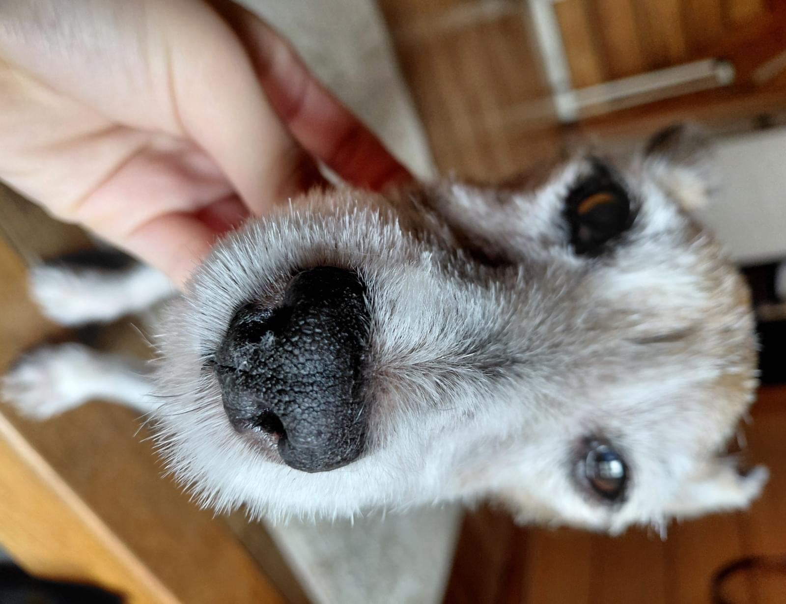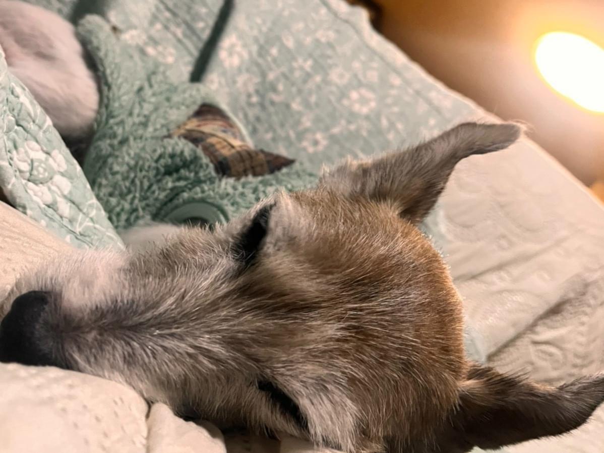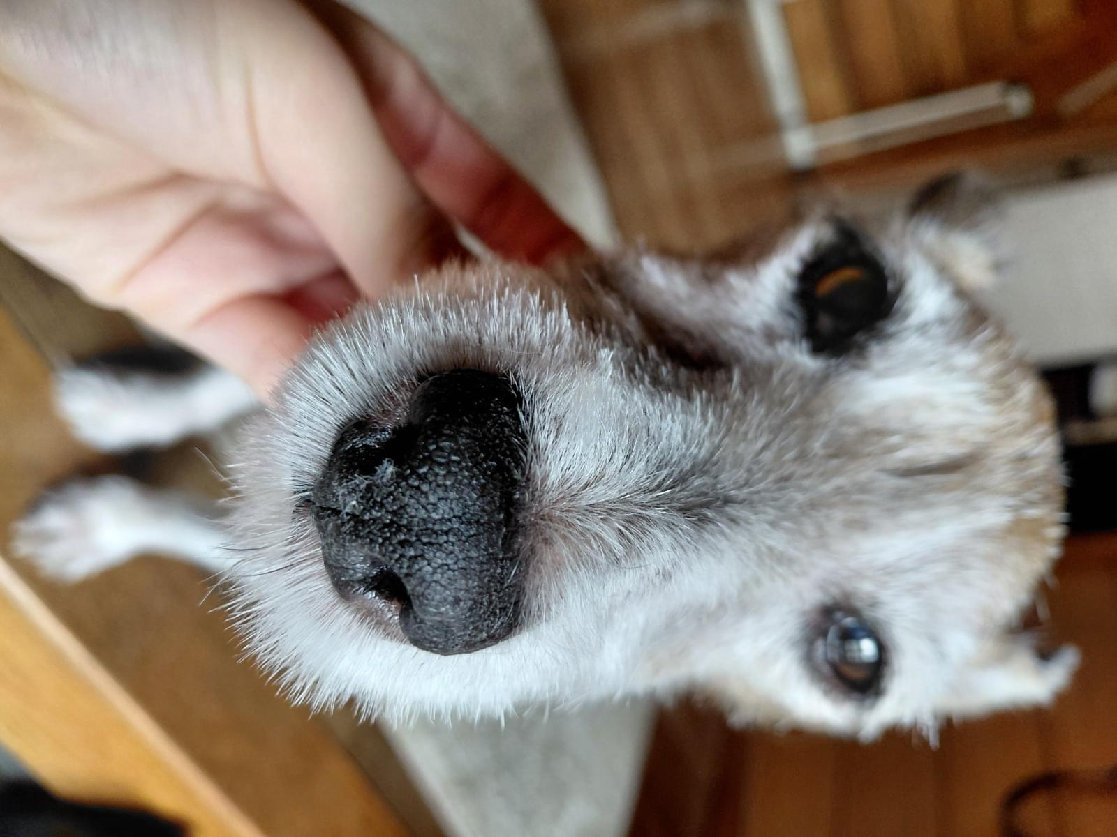 だいぶ臆病ですが認知が進んでいるので軽く吠えるかもしれません。でももう大きな声を出す元気も噛みつく元気もないと思います。